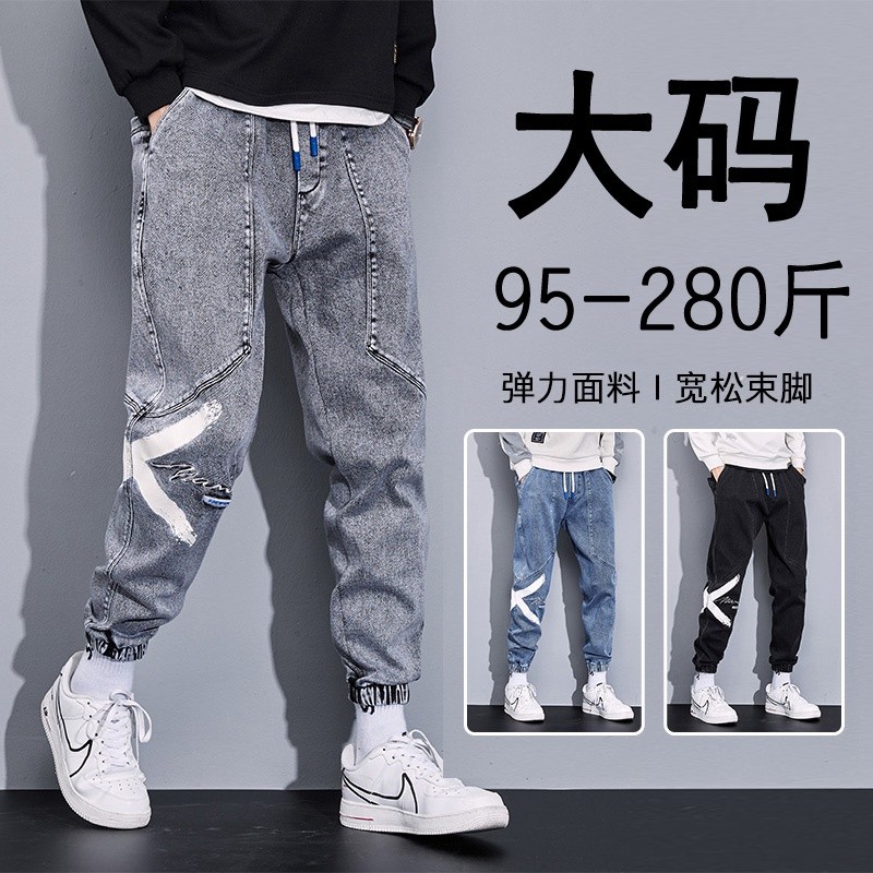 男生裤子2025新款加肥加大薄款休闲牛仔裤男款大码宽松束脚工装裤
