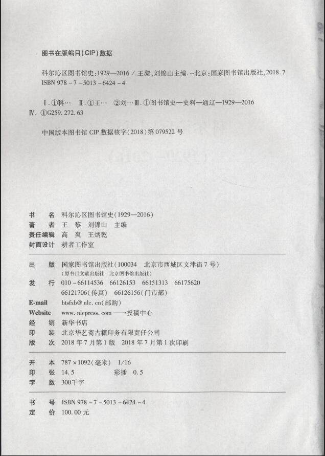科尔沁区图书馆史 (1929-2016)王黎 国家图书馆出版社