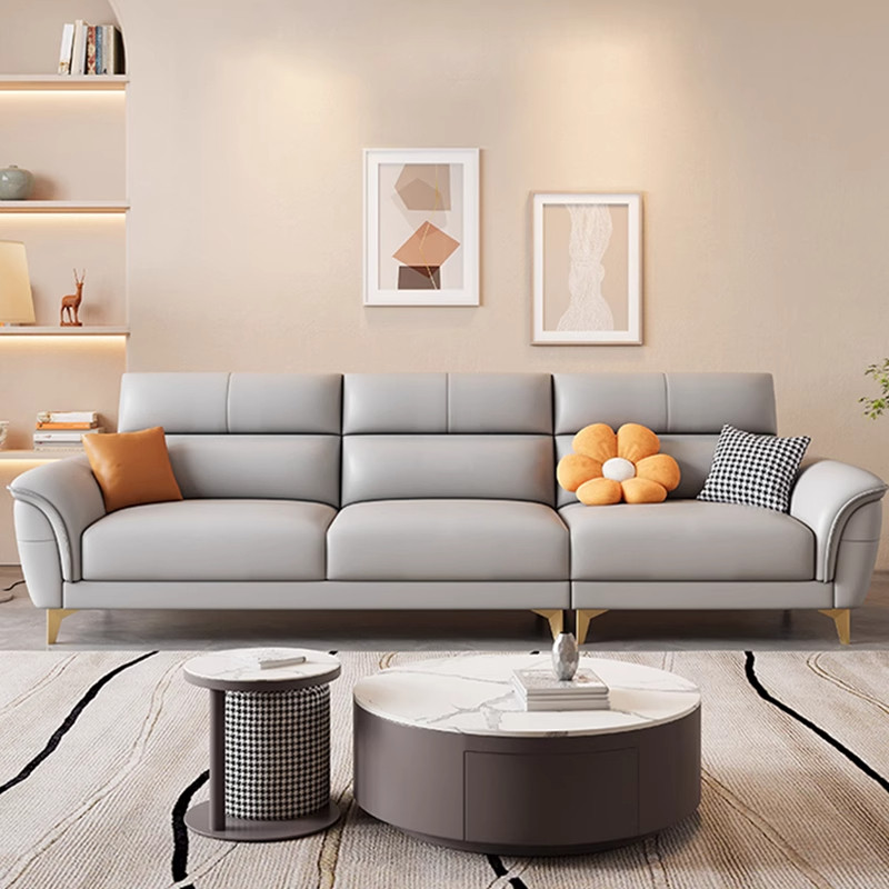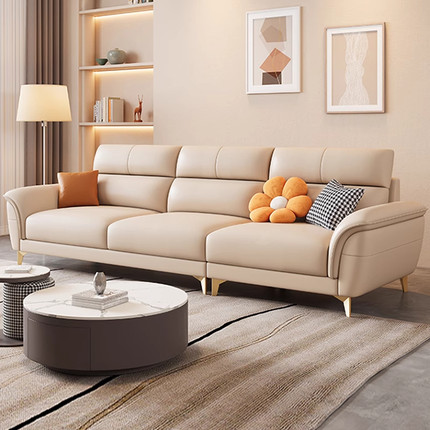 北欧现代简约猫爪皮艺沙发家用小户型客厅极简轻奢网红直排沙发