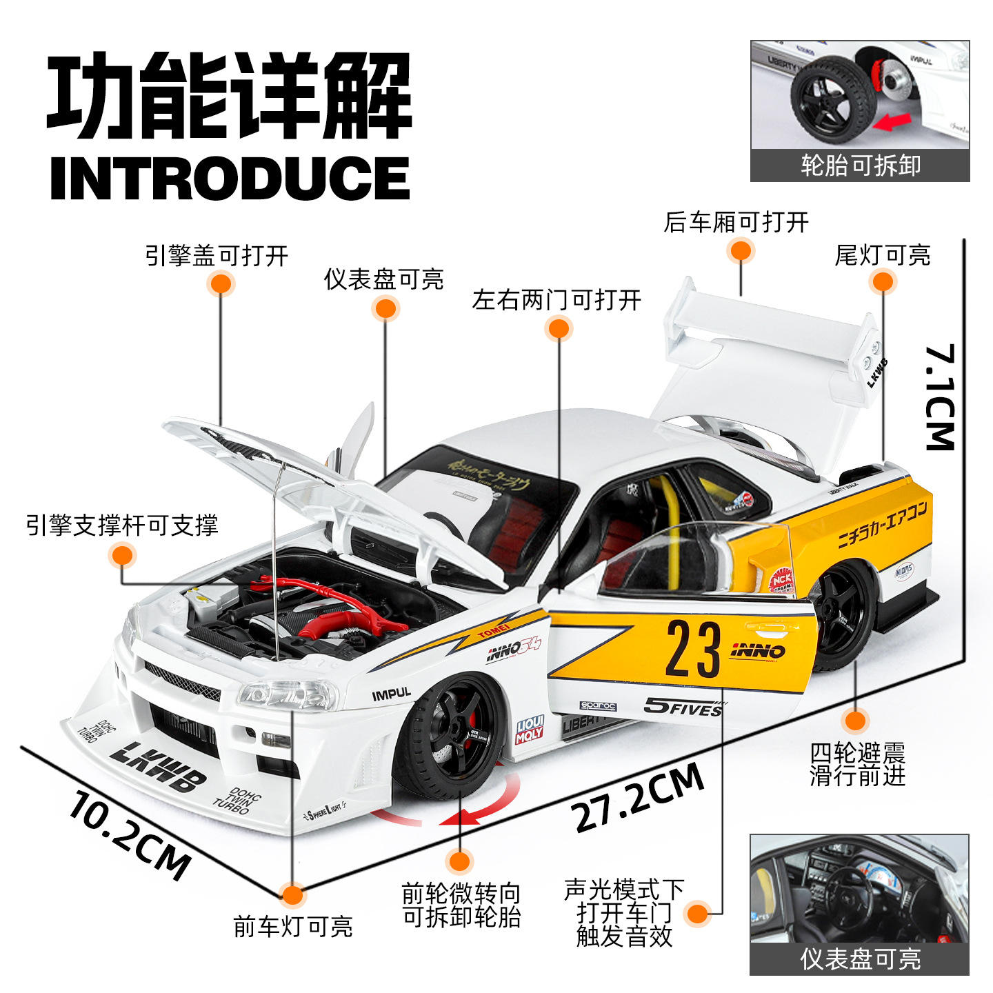 金丽方1/18大号GTR改装版合金汽车模型天际线仿真跑车东瀛战神