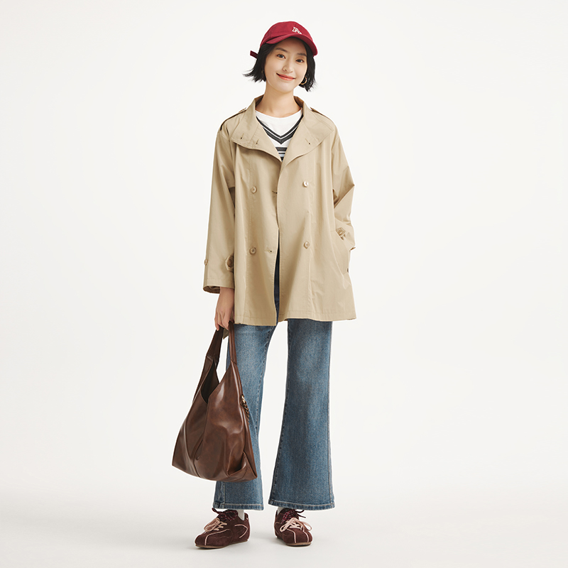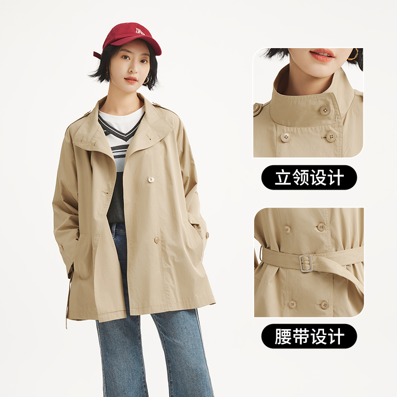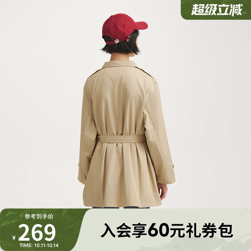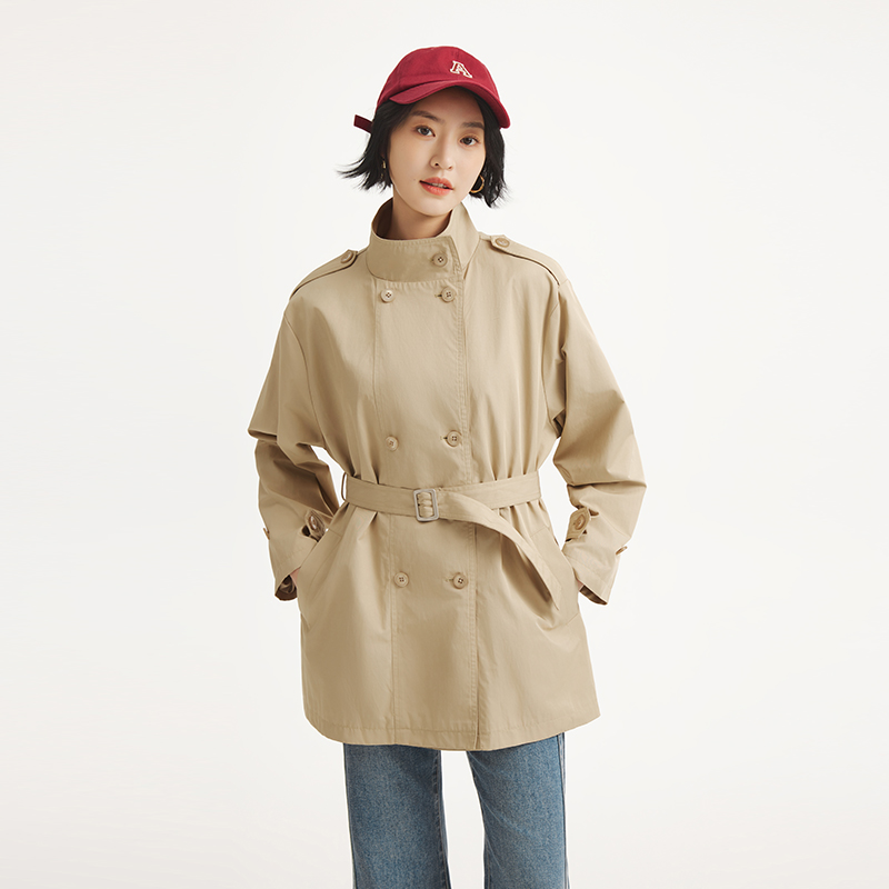 热风2025年秋季新款女士中长款巴恩风设计感风衣挺括有型