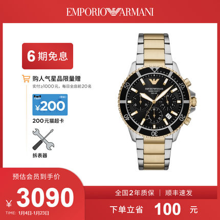 官方正品潜水表阿玛尼三眼运动表
