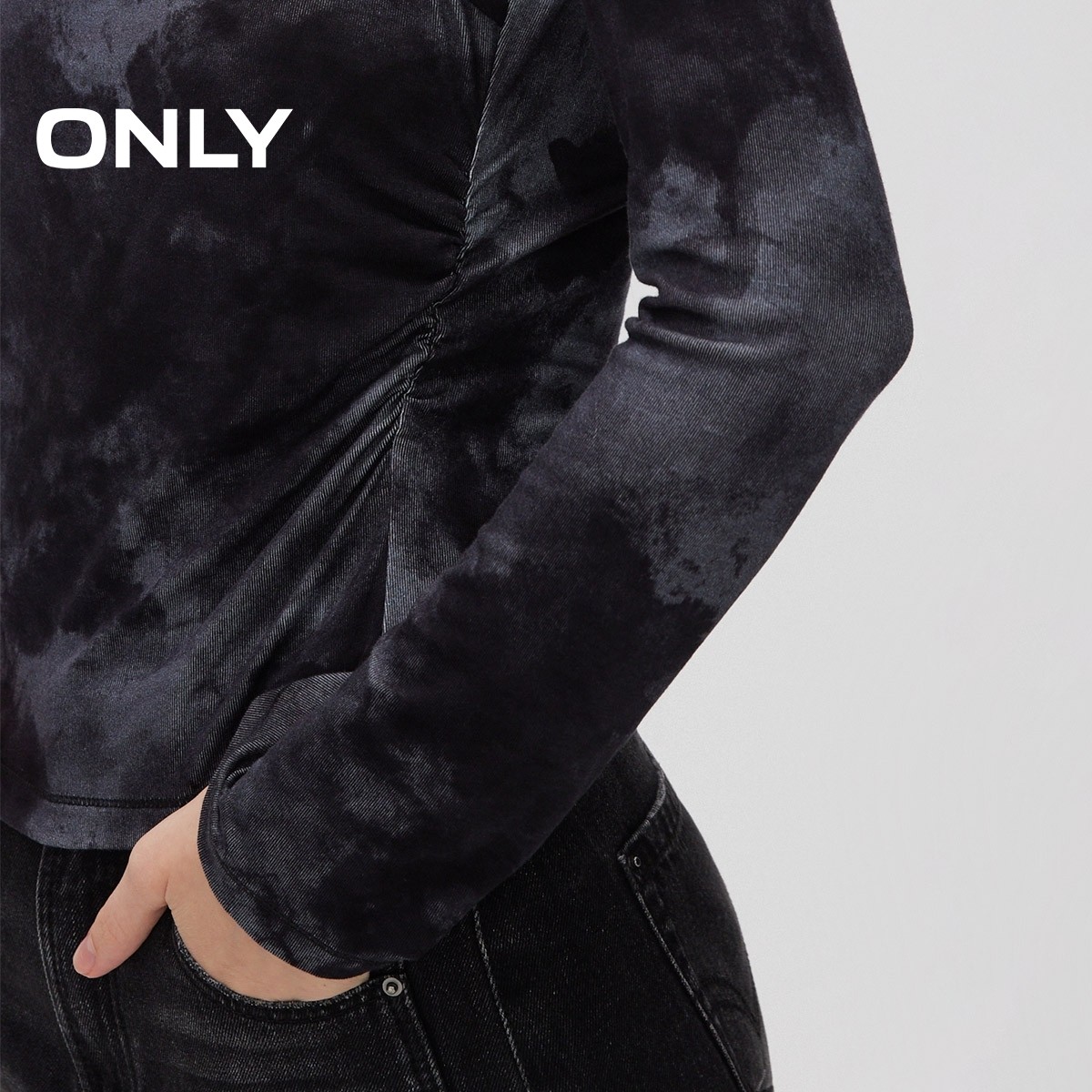 ONLY秋季时髦甜酷风扎染显瘦方领长袖T恤女|124302016