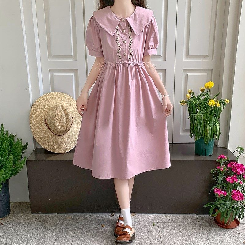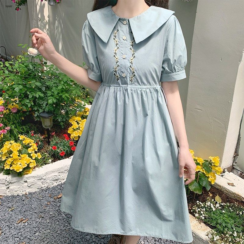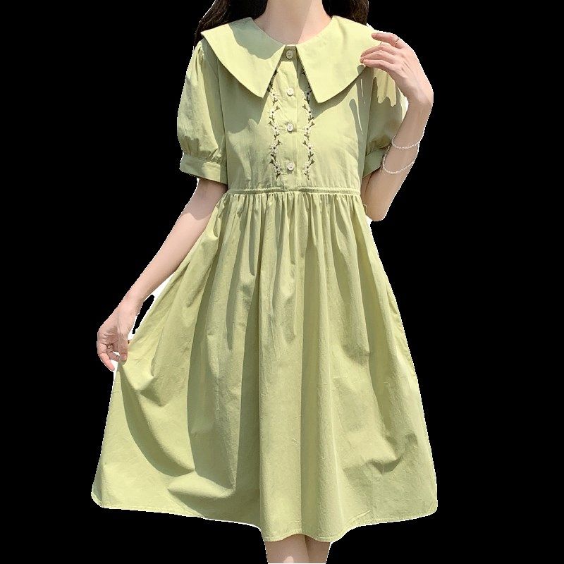 大童女装刺绣连衣裙2025夏季新款女孩短袖学院风裙子13岁学生洋气