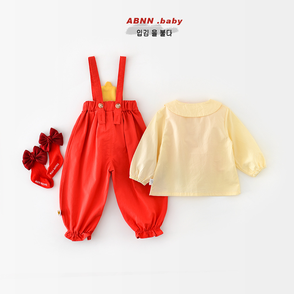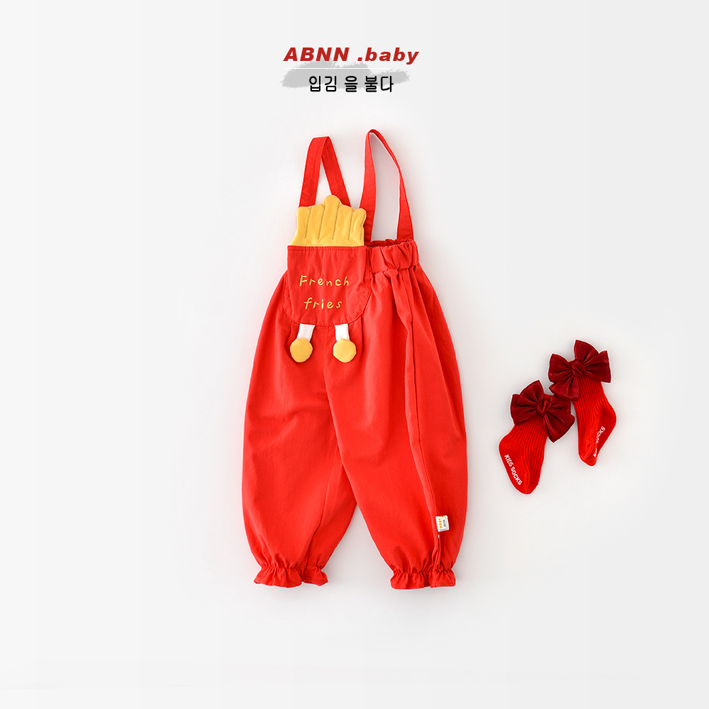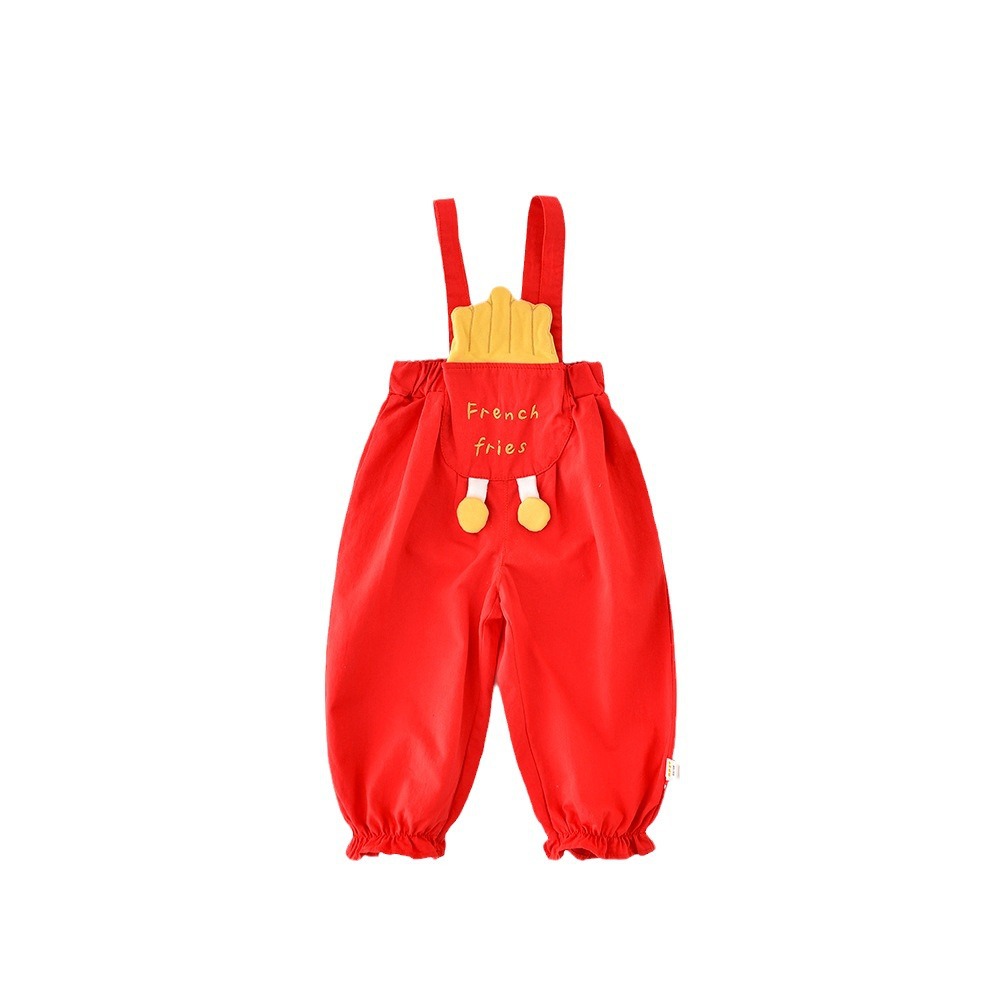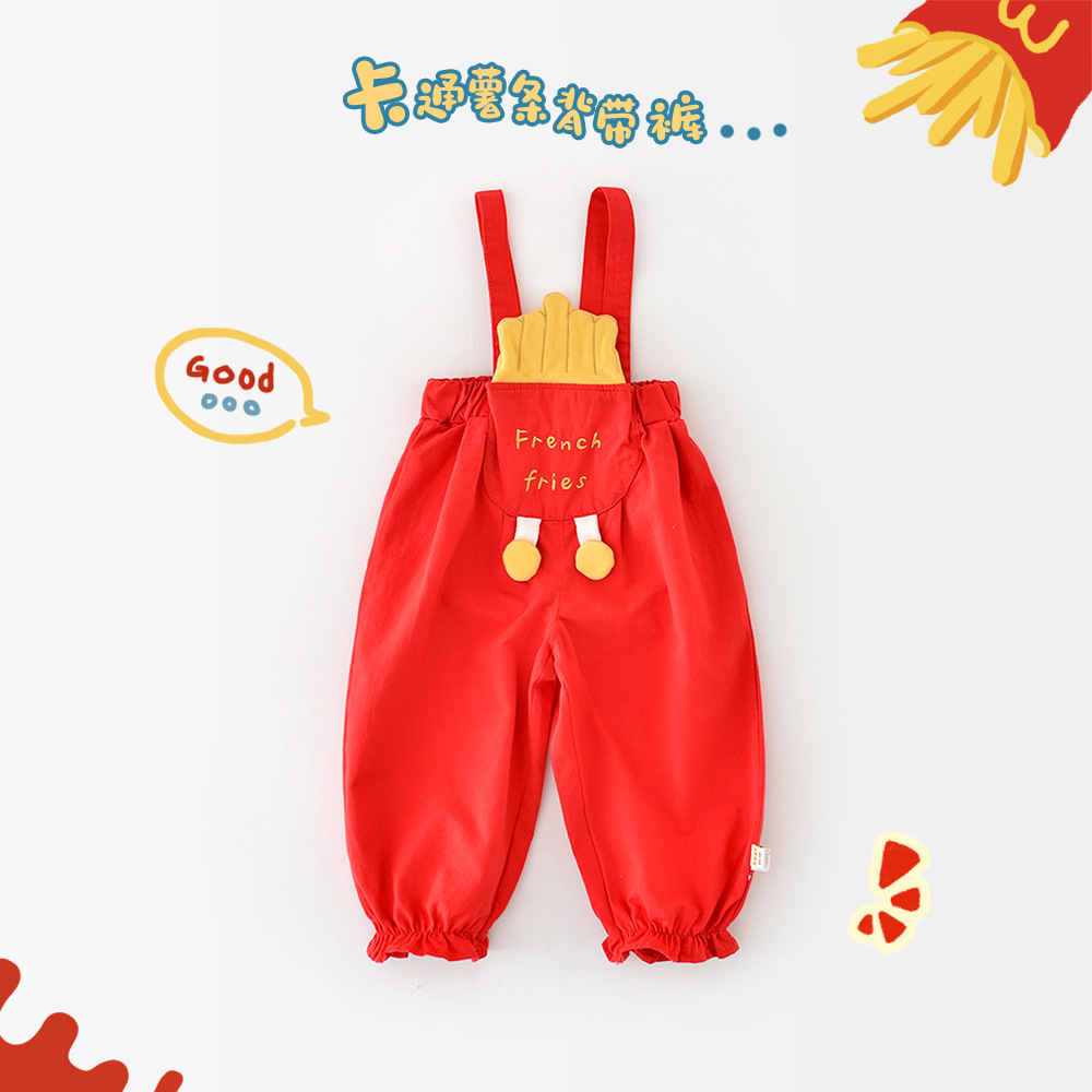 男女宝宝秋季裤子儿童棉质趣味薯条背带裤14岁小童时髦长裤93579