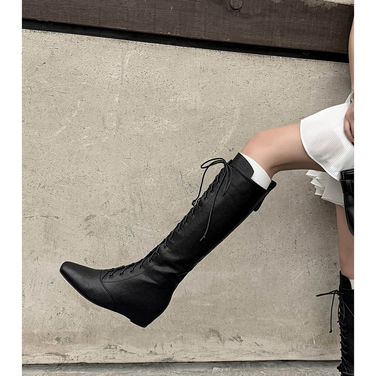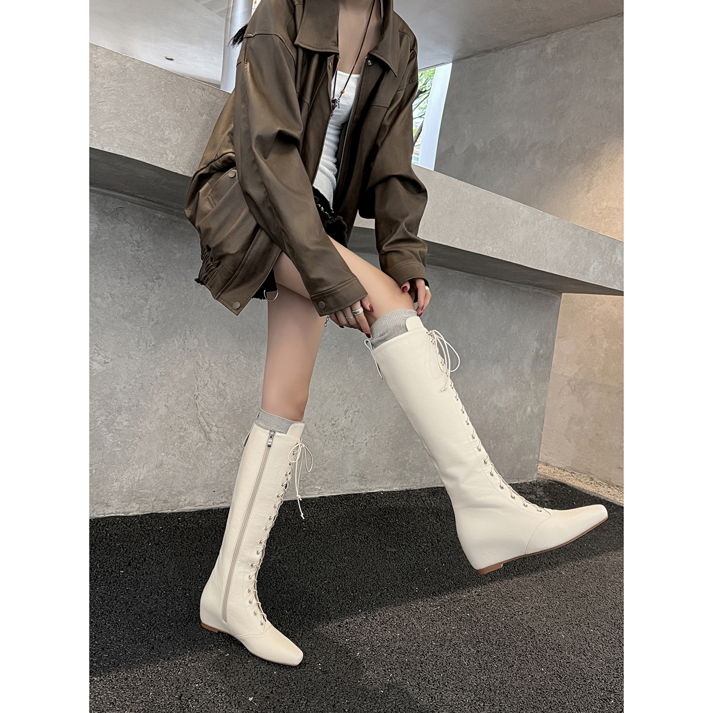 5cm辣妹交叉细带内增高骑士靴女2025新款方头高筒显瘦不过膝长靴