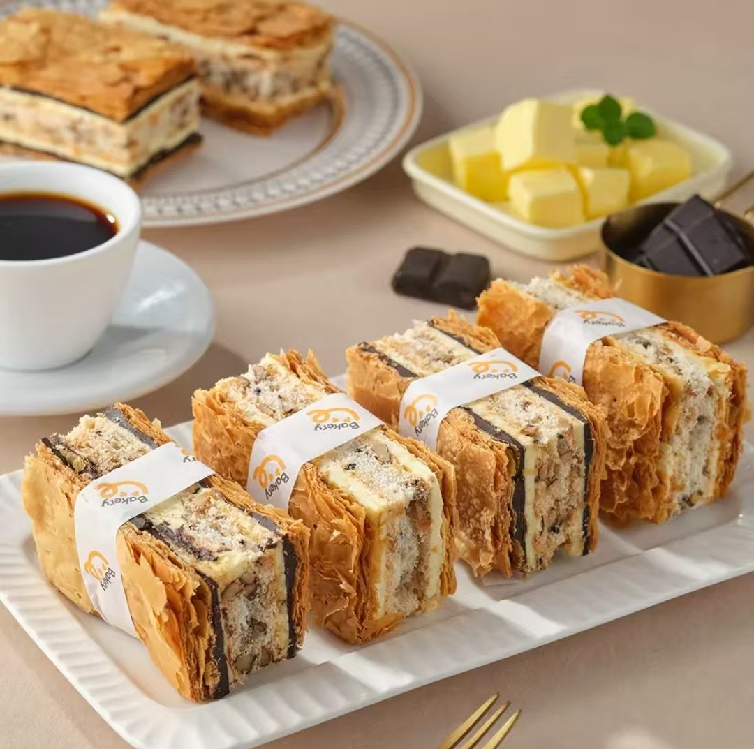 代购 盒马烘焙 安心双拼拿破仑酥(原味+巧克力味)200g4粒