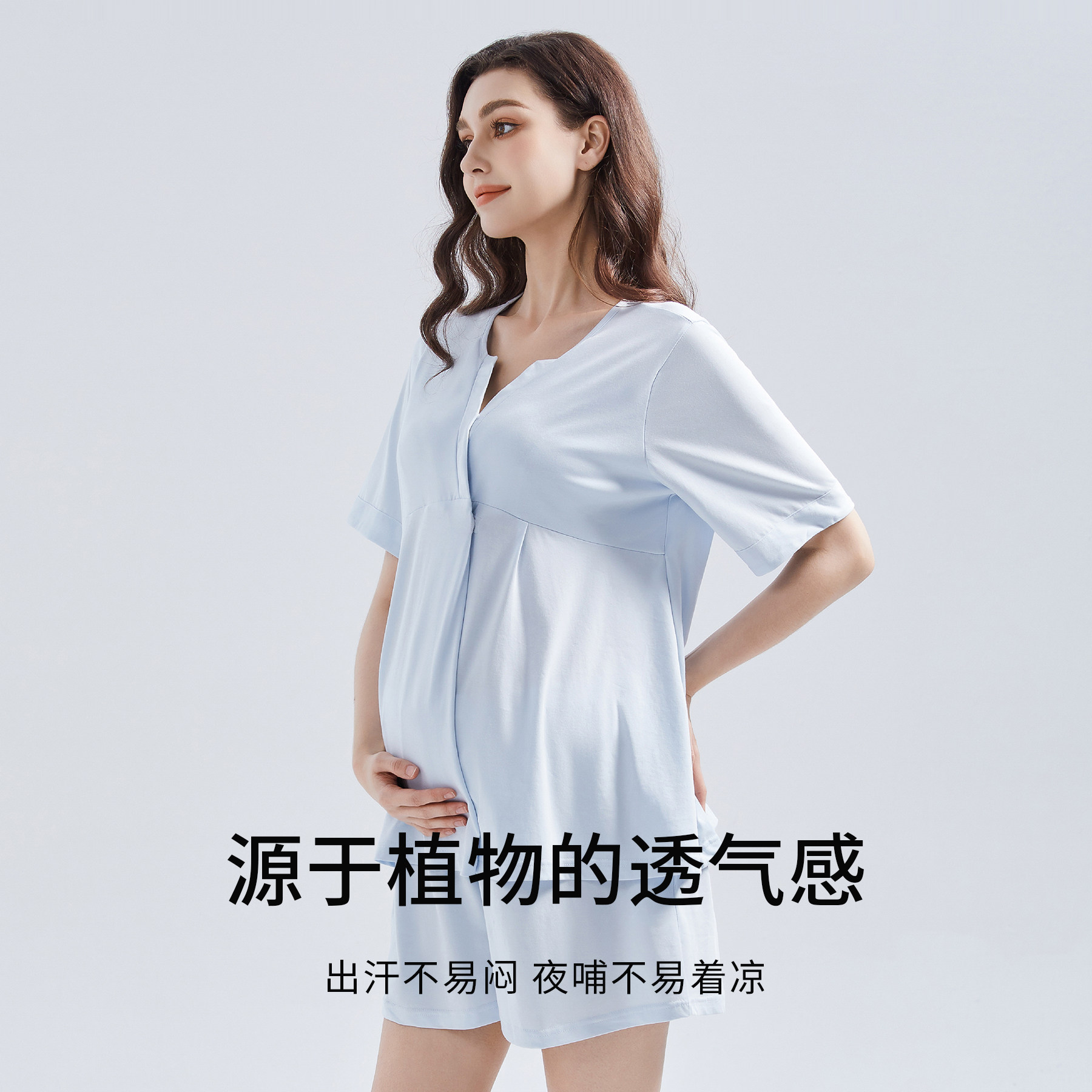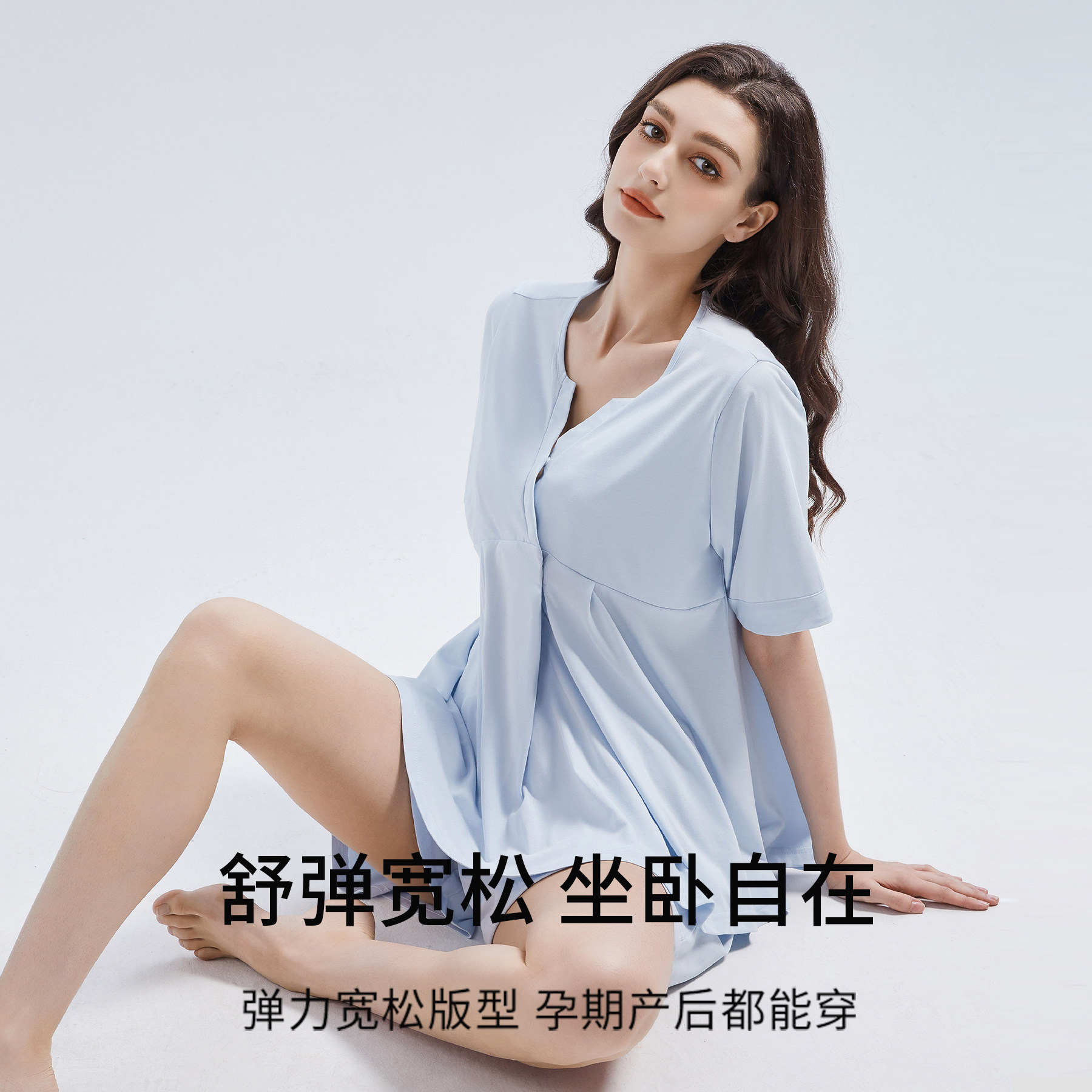 歌美姿孕妇睡衣短袖夏季孕期产前莫代尔月子服哺乳家居服胸垫套装