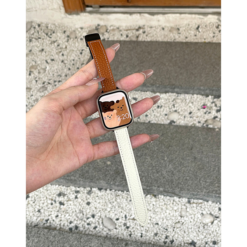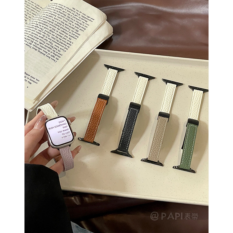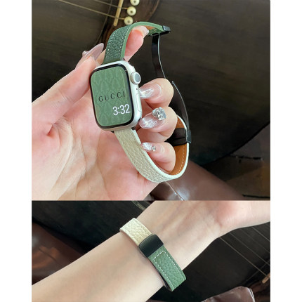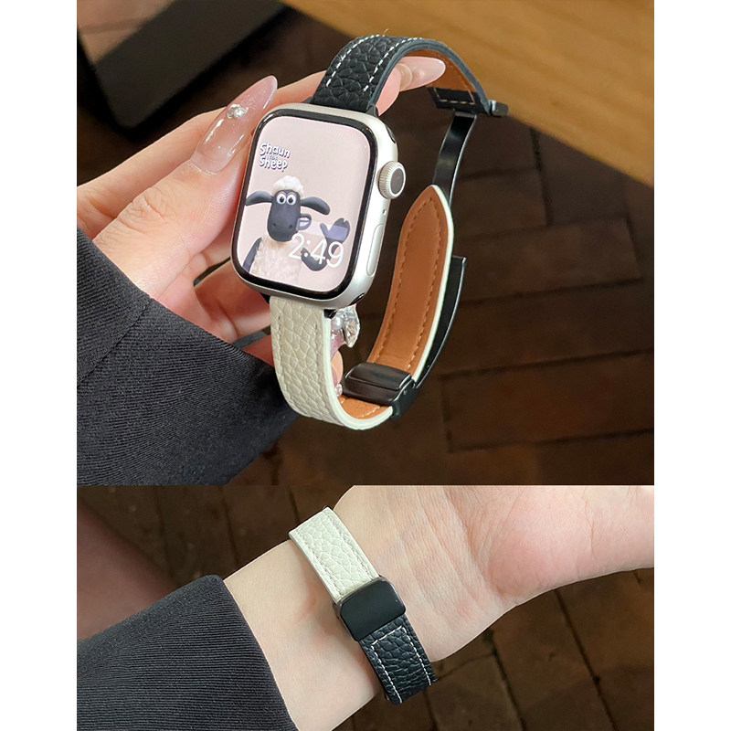 细款荔枝纹真皮磁吸扣女款适用iwatch10苹果表带applewatch9876se
