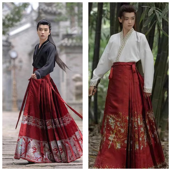出租新中式汉服马面裙古装齐腰飞机袖男女伴郎伴娘服整套租赁