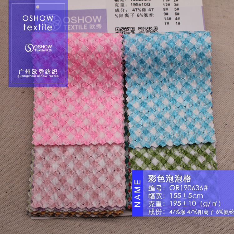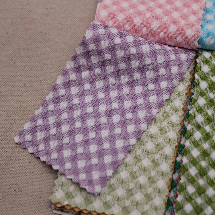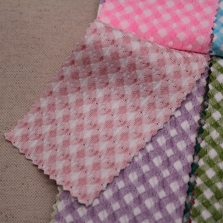 195克彩色格子弹力提花针织服装面料打底衫T恤背心裹胸连衣裙布料