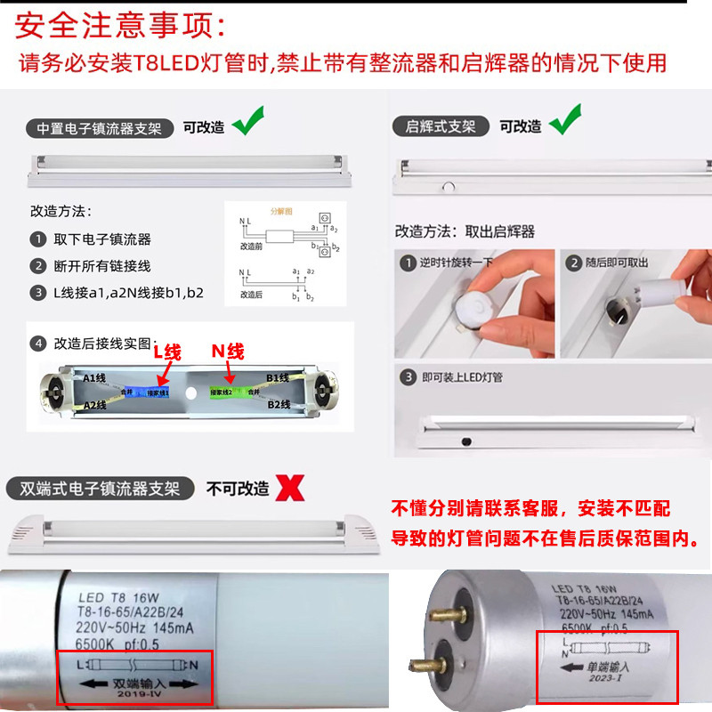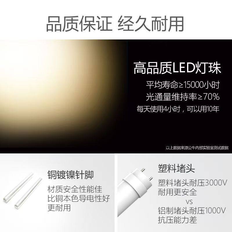 公牛T8led节能护眼灯管1.2米50W双端超亮0.6米0.9米护眼日光灯
