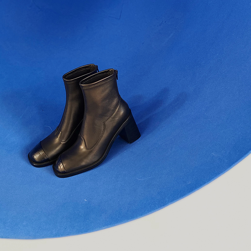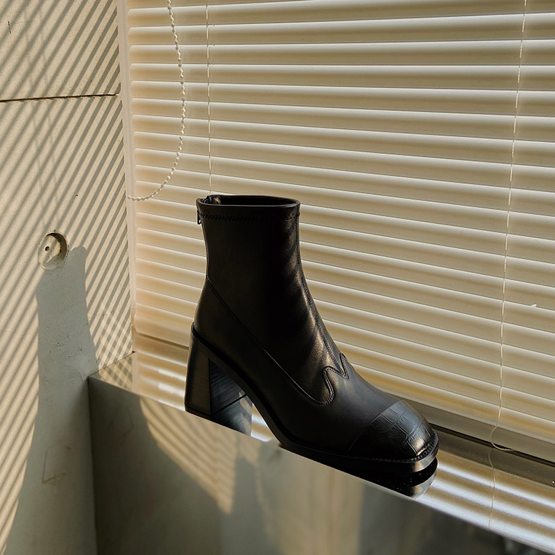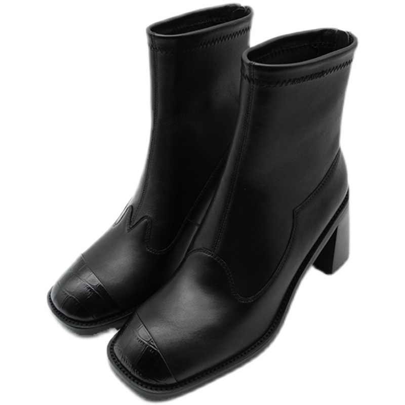 BIUCILI【喻言同款】原创大女人粗跟羊皮高跟小个子弹力靴女短靴