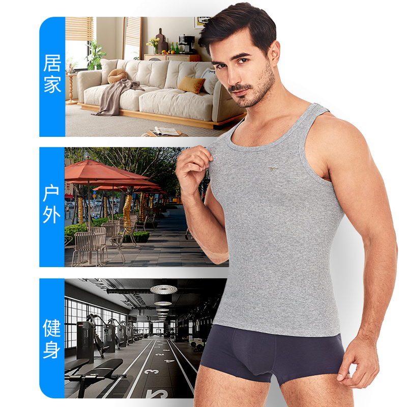七匹狼男士背心纯棉紧身粗螺纹健身运动跨栏2025新款二股筋汗衫男