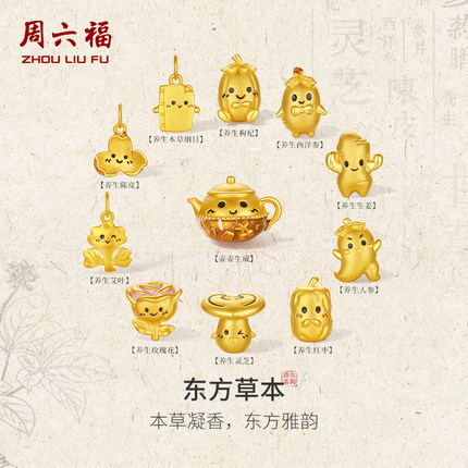 周六福黄金5d硬金转运珠定价首饰中药养生陈皮生姜东方草本送礼物