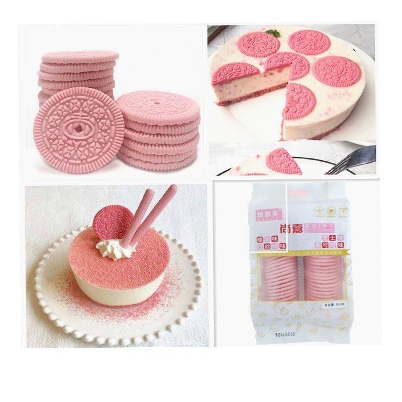 粉色奥利奥风味樱花味圆饼干网红慕斯蛋糕装饰烘焙原料樱花蛋糕