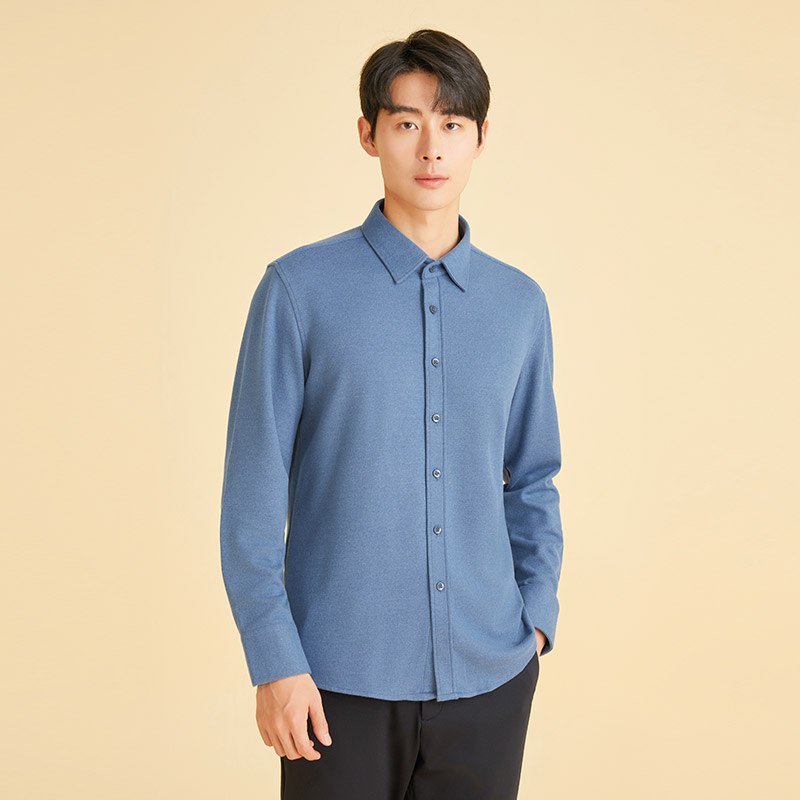【针织】乔治白冬季男士长袖衬衫休闲纯色加厚衬衣弹力上衣