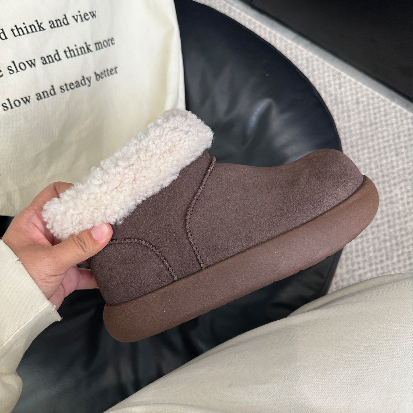 防水牛皮雪地靴女皮毛一体大土豆大地瓜短筒加绒防滑一脚蹬马丁靴