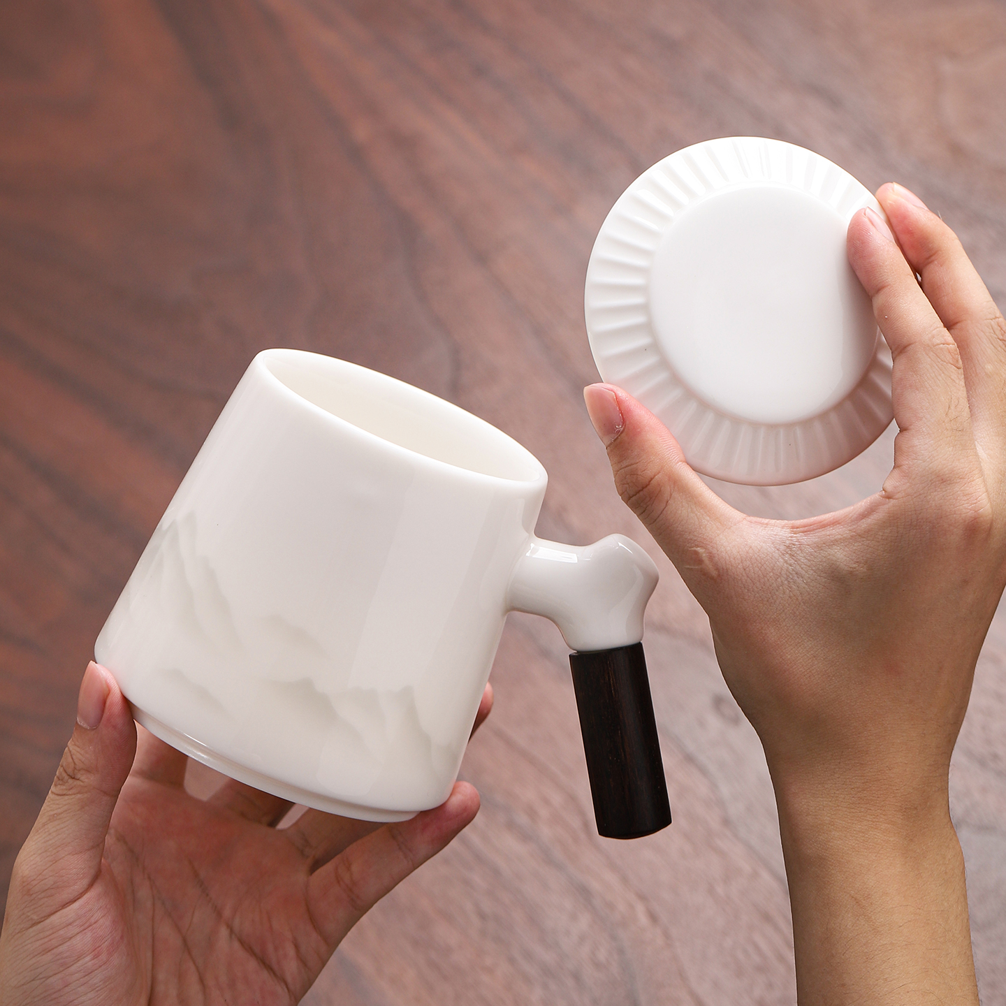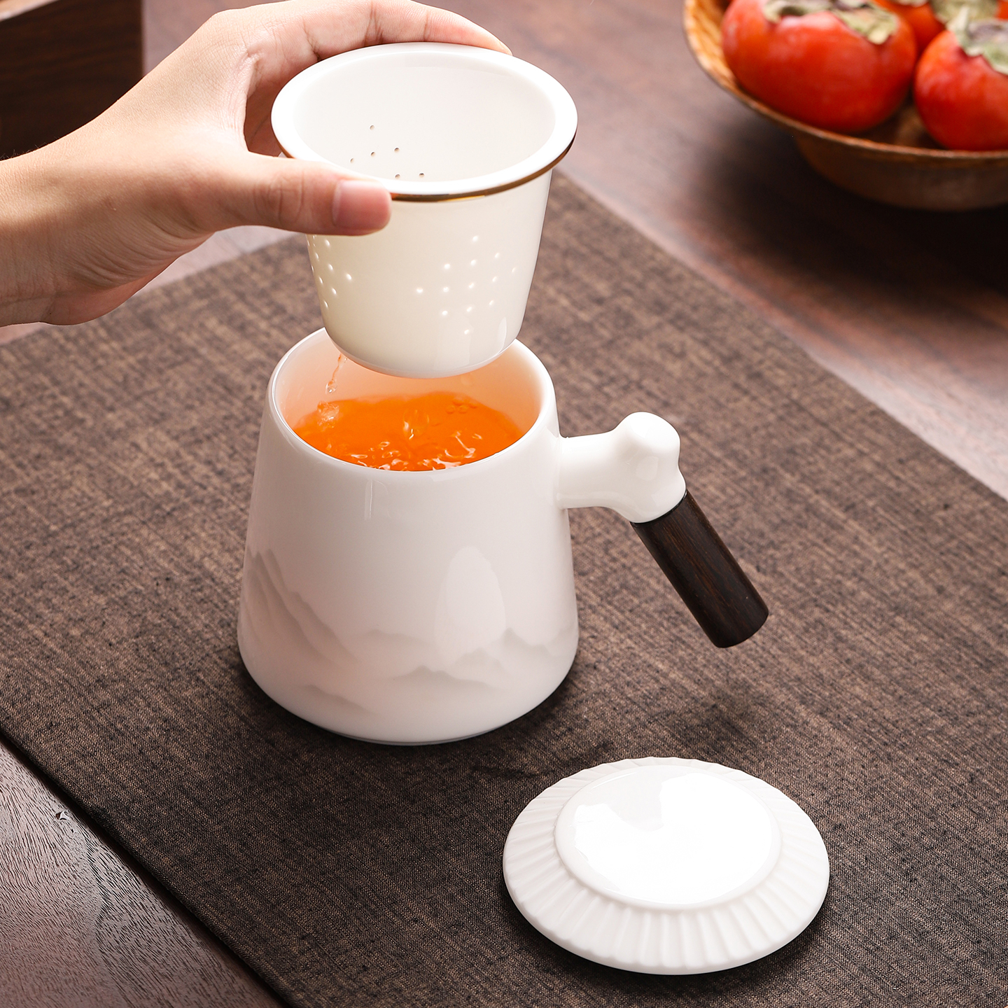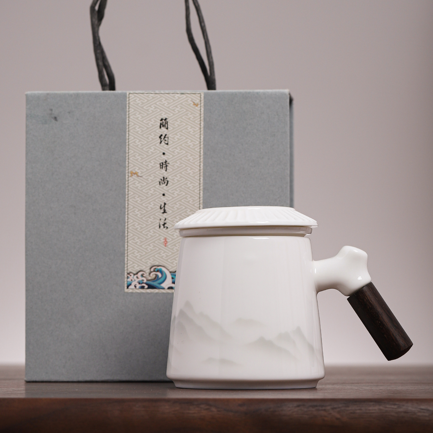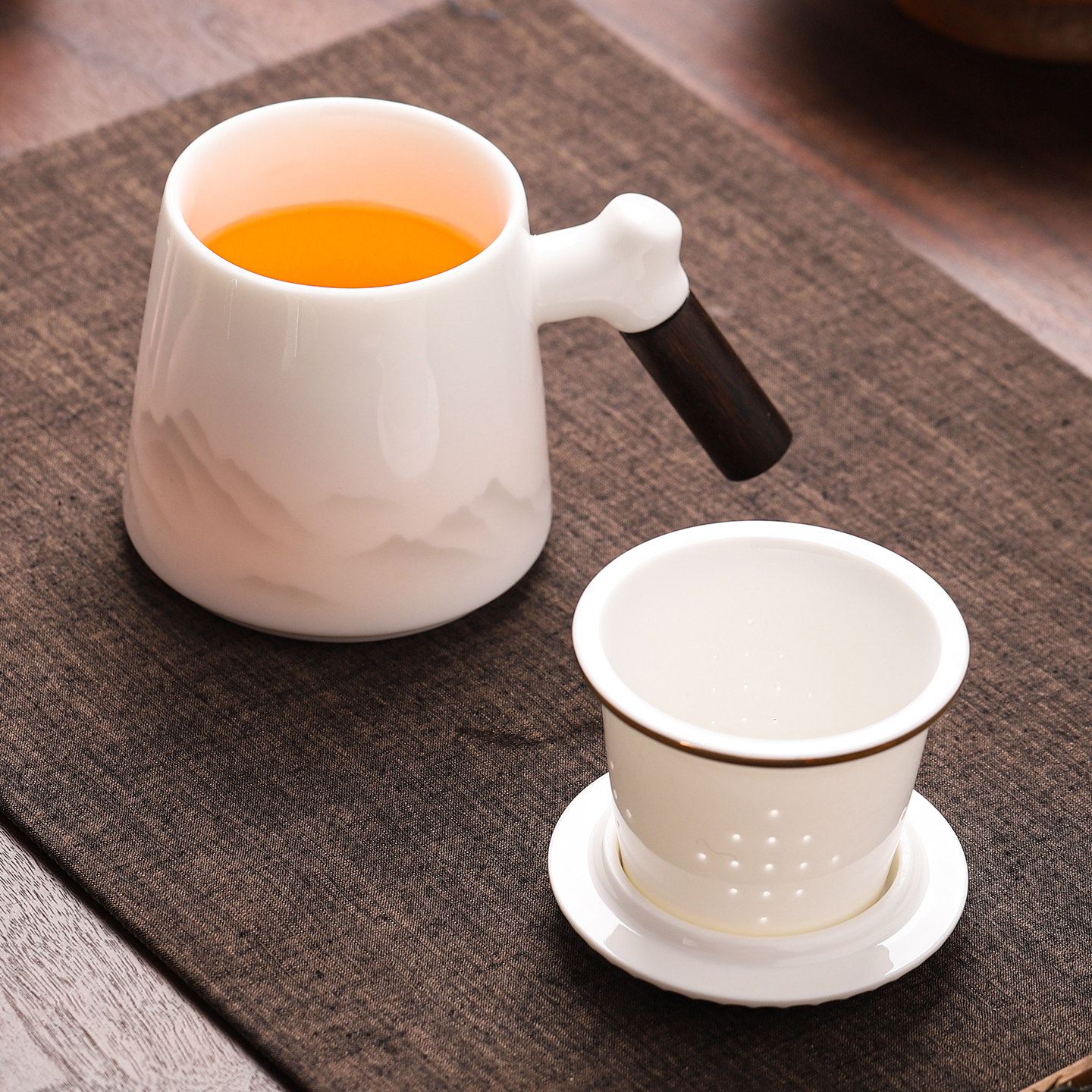 高档陶瓷茶杯个人专用茶水分离杯大容量办公水杯带盖过滤茶杯送礼