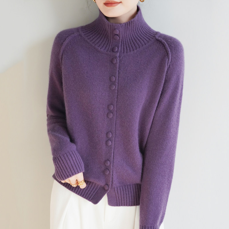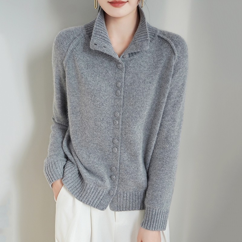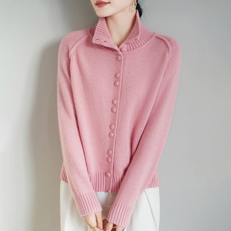 鄂尔多斯市立领红色毛衣开衫女宽松慵懒风纽扣针织外套洋气新年款