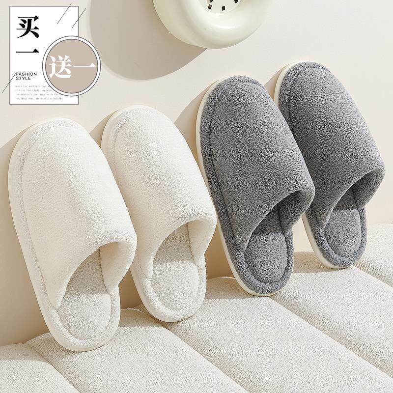 日本MUI 买1送1静音棉拖鞋秋冬2026新款家居室内情侣保暖毛拖鞋