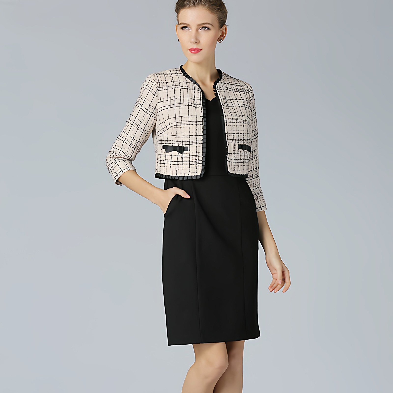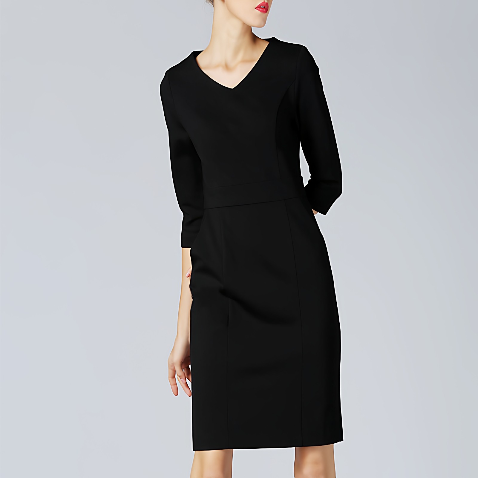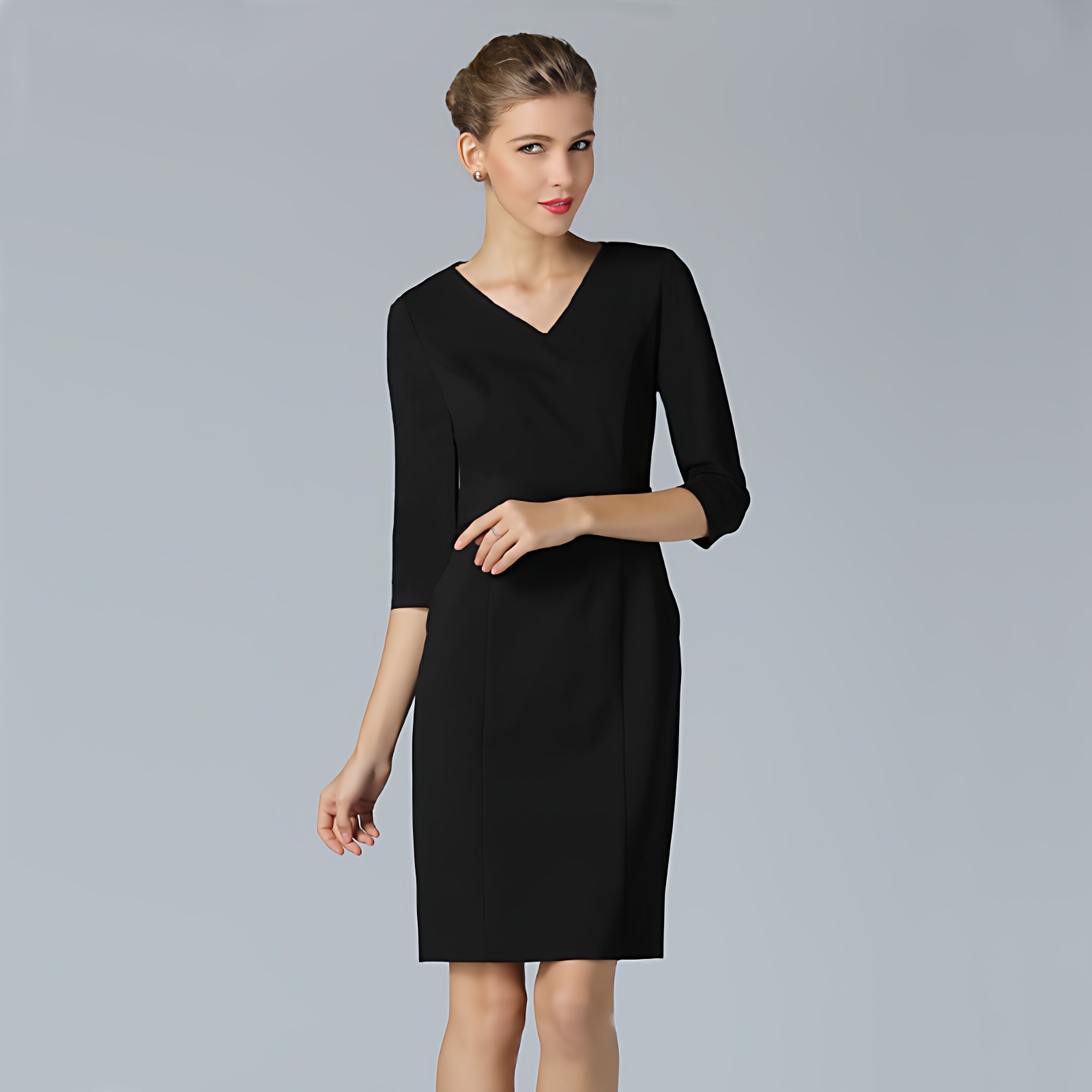 2025春秋冬女装大码黑色v领长袖打底直筒修身职业连衣裙子中长款