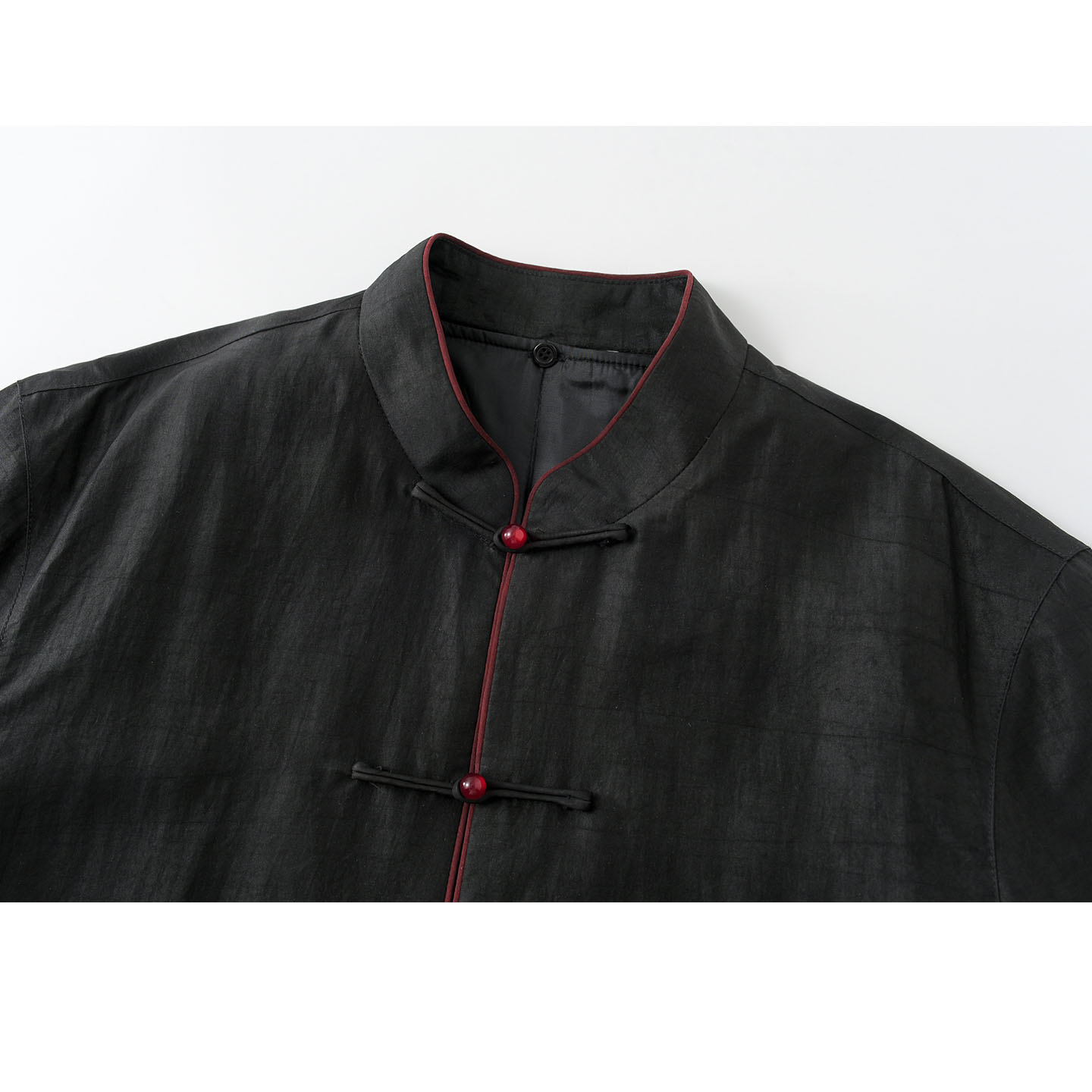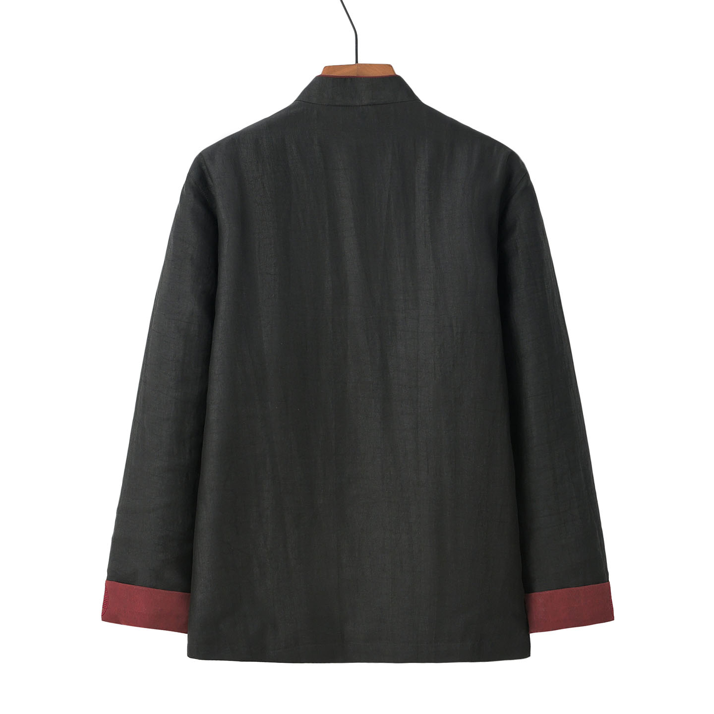龟纹香云纱唐装外套男士100%桑蚕丝真丝上衣保暖中老年男装爸爸装