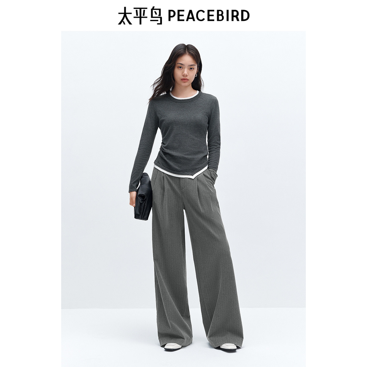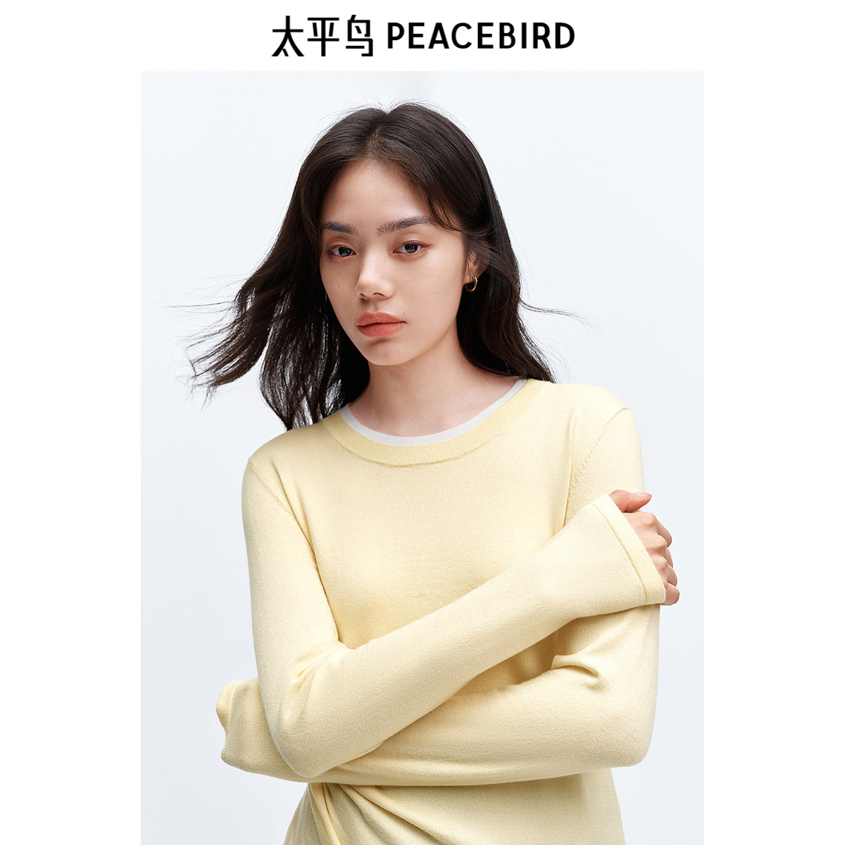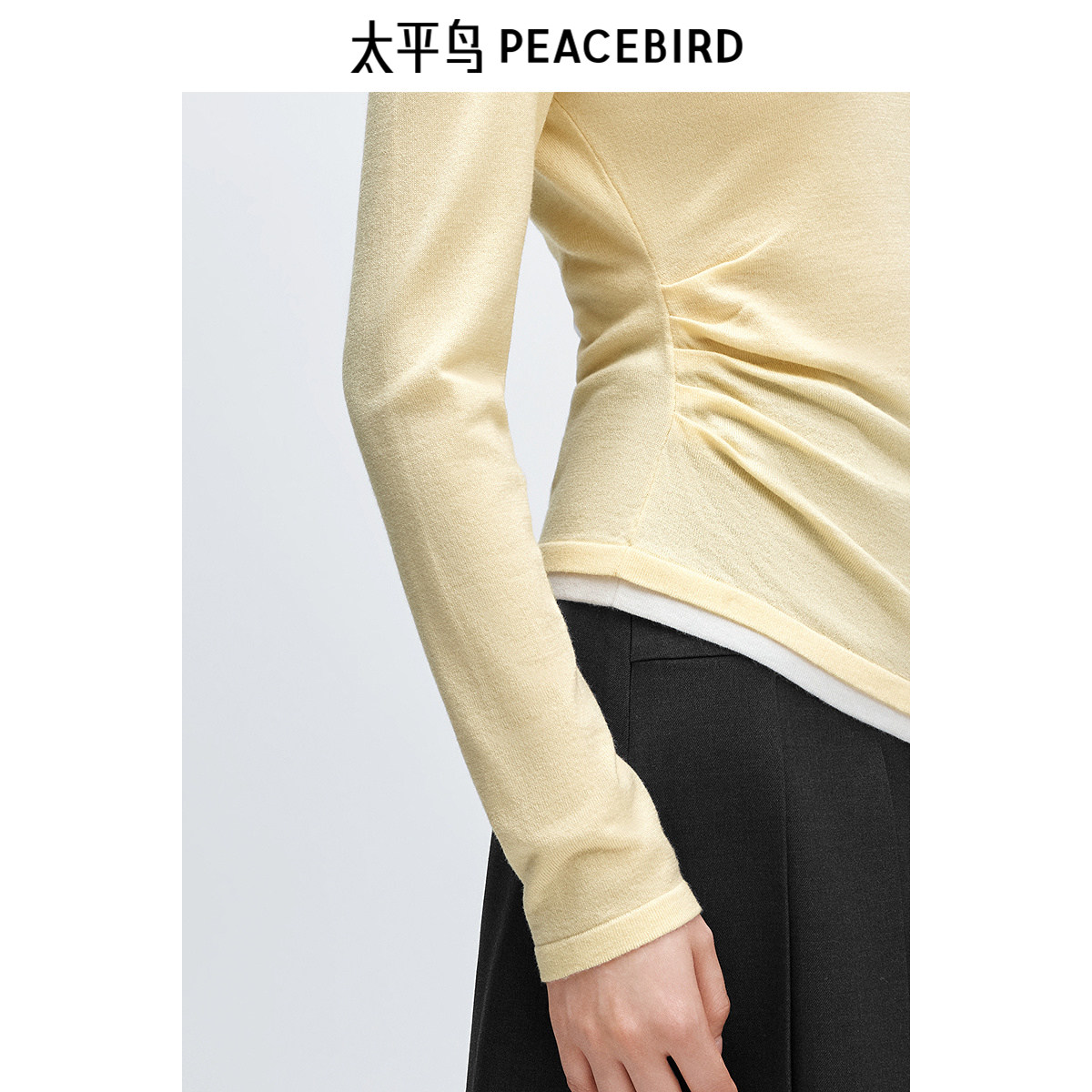 太平鸟含绵羊毛假两件打底线套衫女冬装内搭针织上衣女