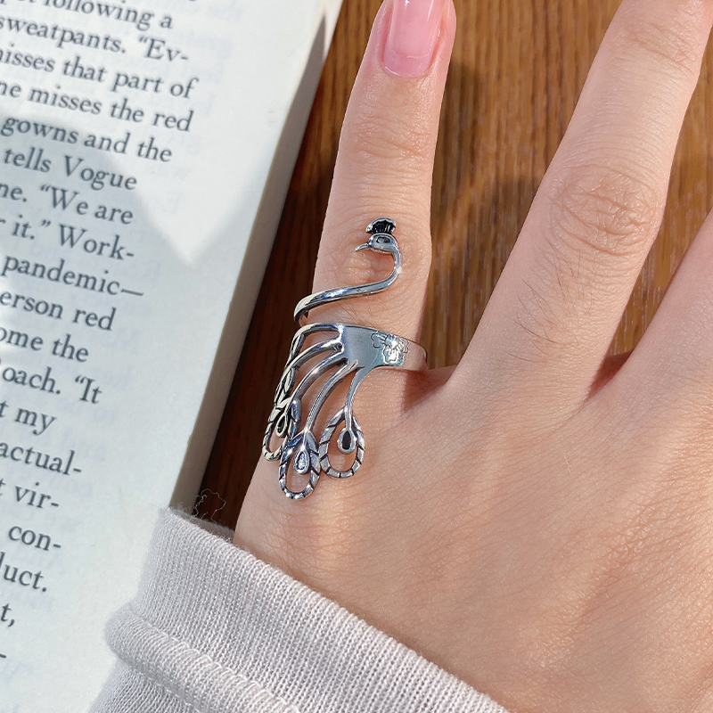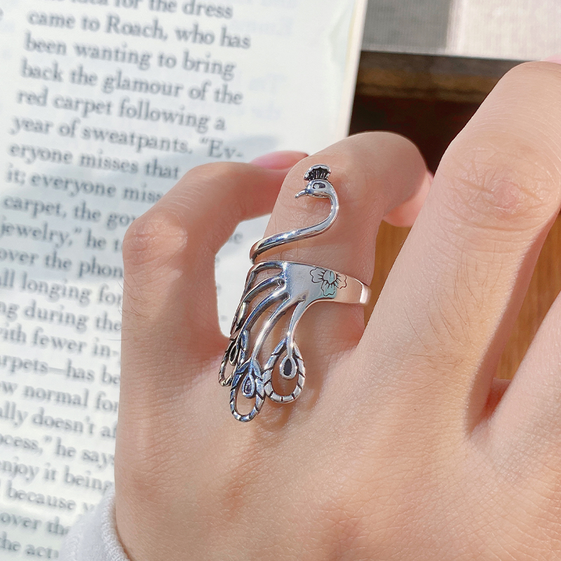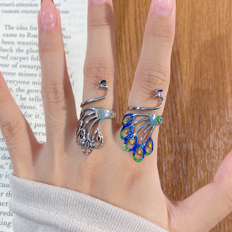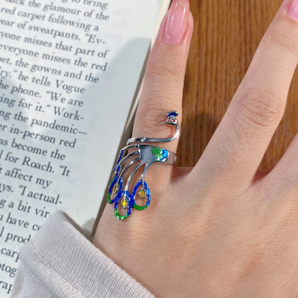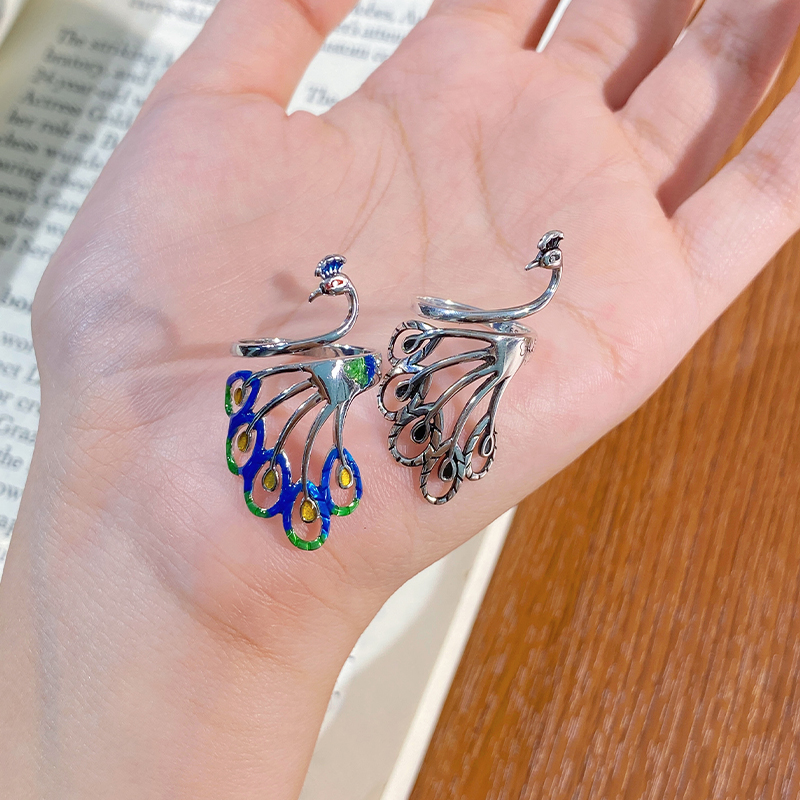 珐琅彩纯银孔雀戒指景泰蓝尾戒小指女小拇指送女友老婆礼物