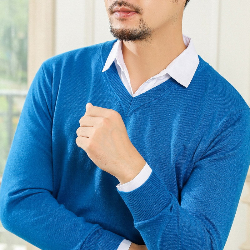 羊毛衫男士长袖圆领毛衣秋冬保暖V领套头宽松大码针织打底羊绒衫