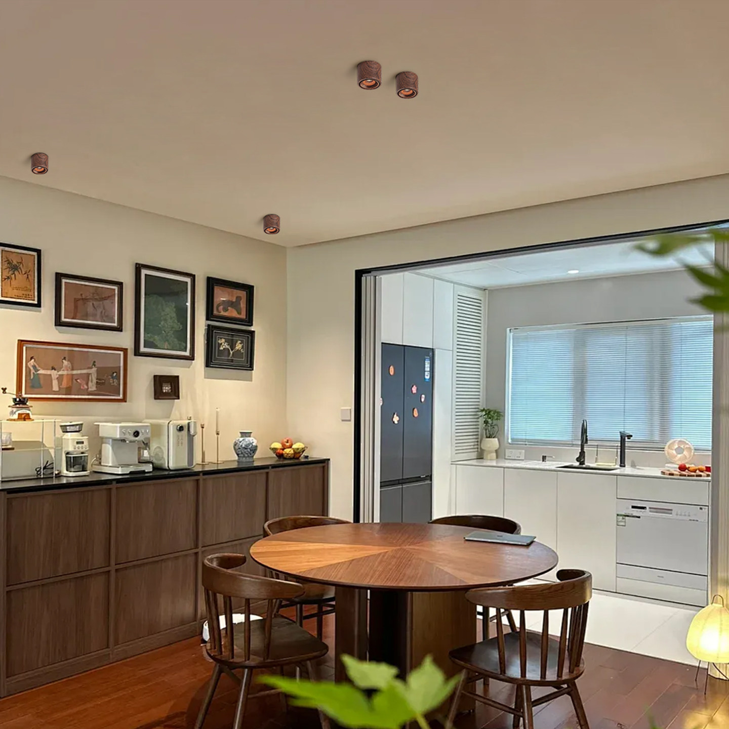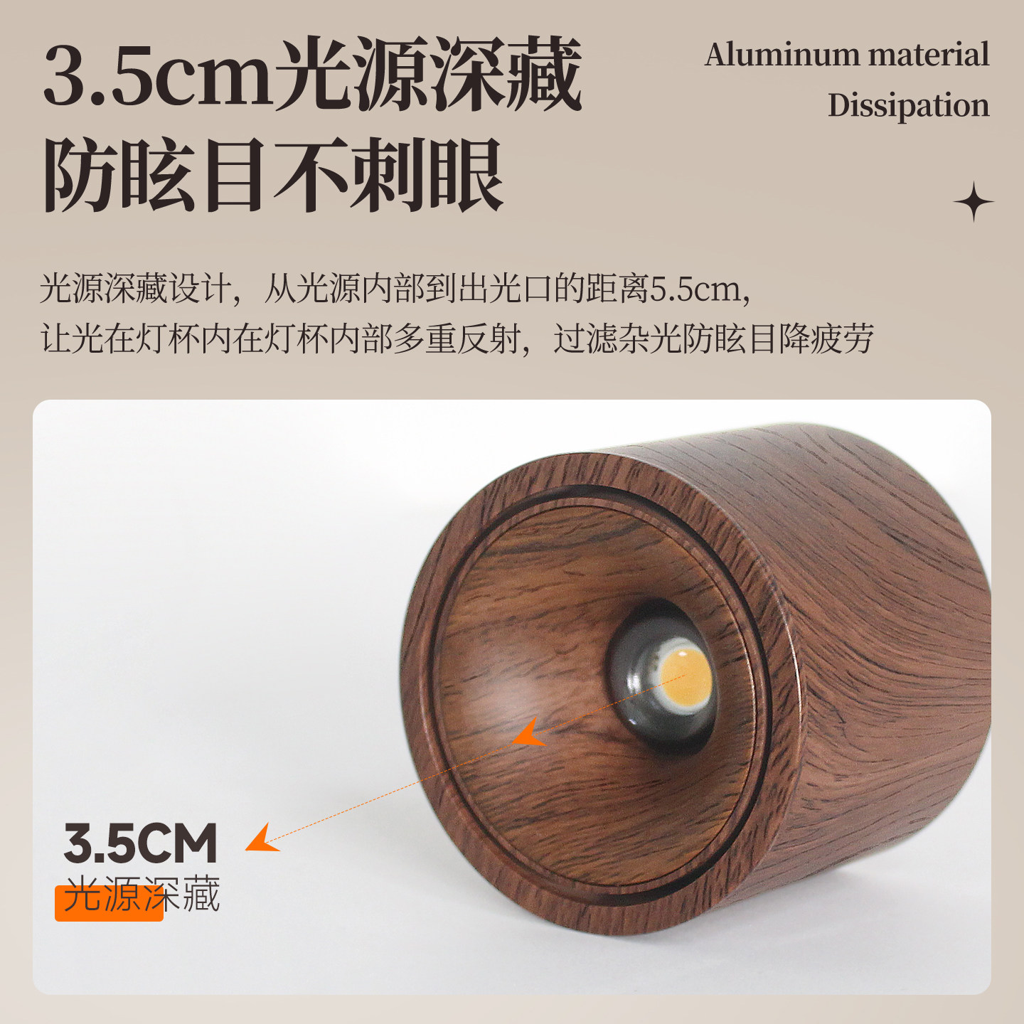 中古风胡桃木纹射灯可调节小山丘