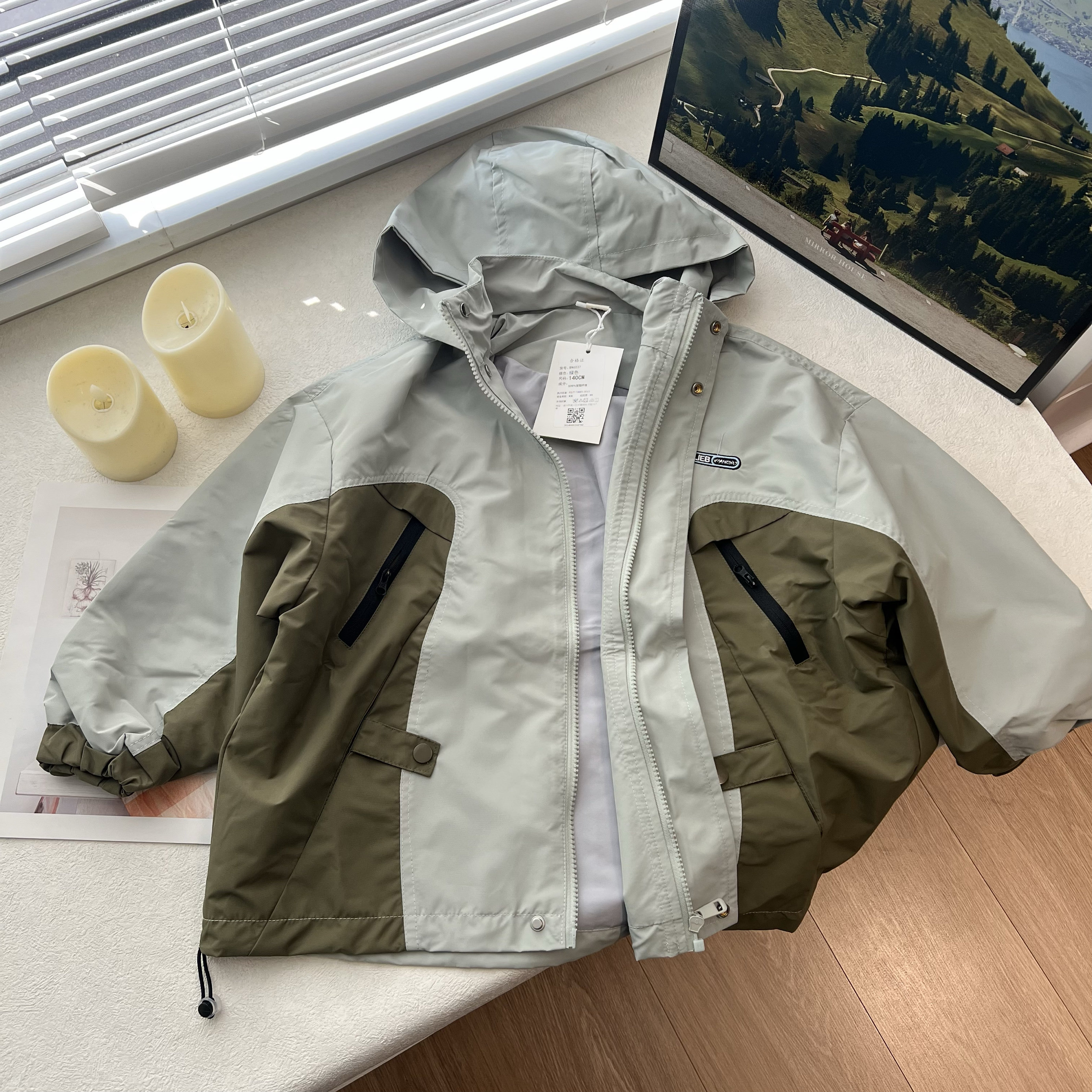 30A秋薄款户外运动儿童防水男外套中大童拉链冲锋衣外套120-170