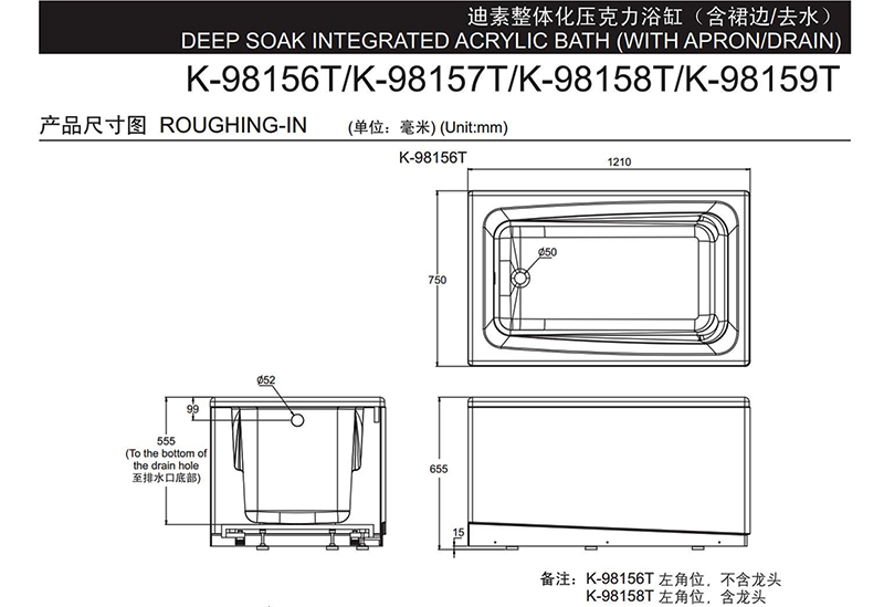 科勒浴缸1.2米迪素裙边式家用独立整体浴缸压克力小户型深泡98156