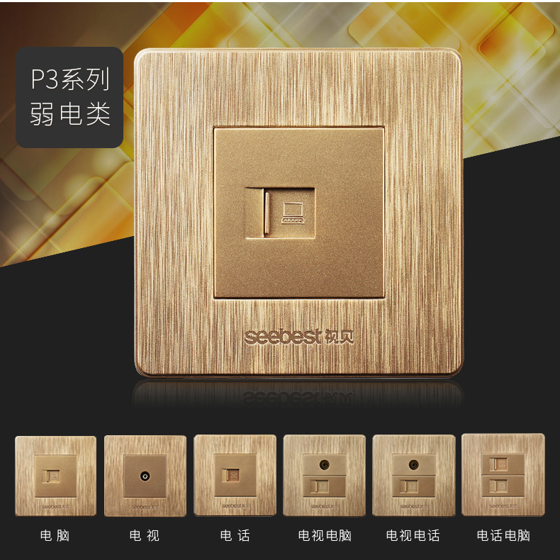 视贝开关插座面板86型一开五孔插座带开关暗装空调16A插座usb金色
