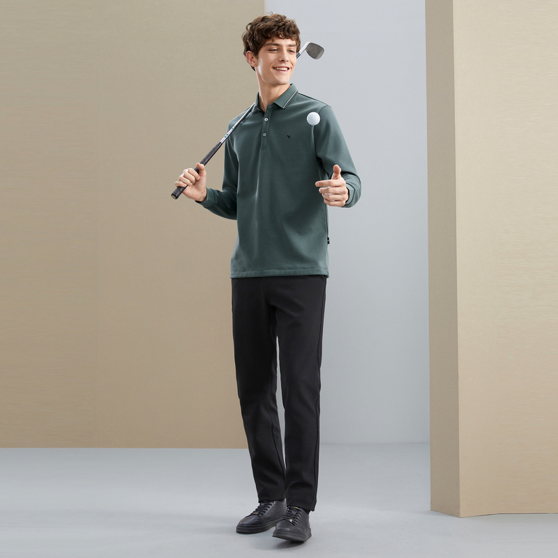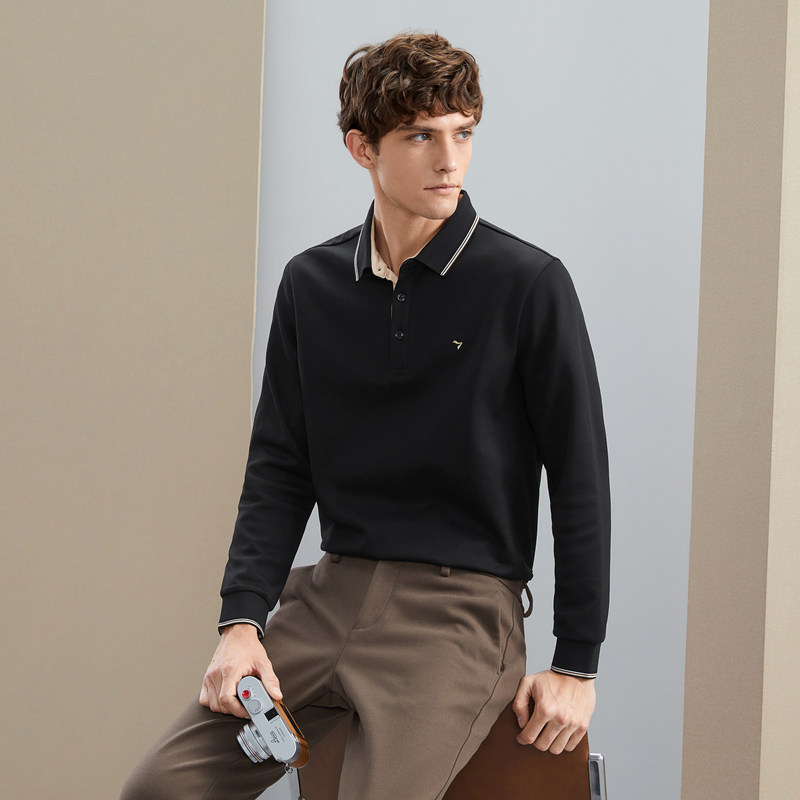 【加绒保暖】柒牌polo衫男长袖2025秋冬厚款商务百搭撞色翻领T恤