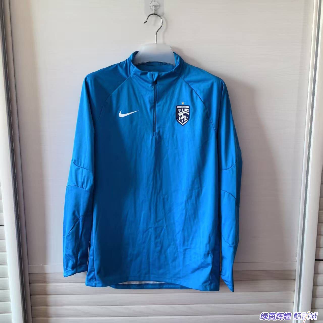 FD3615-406耐克NIKE中超武汉队长袖半拉链鲨鱼皮球员版足球训练服