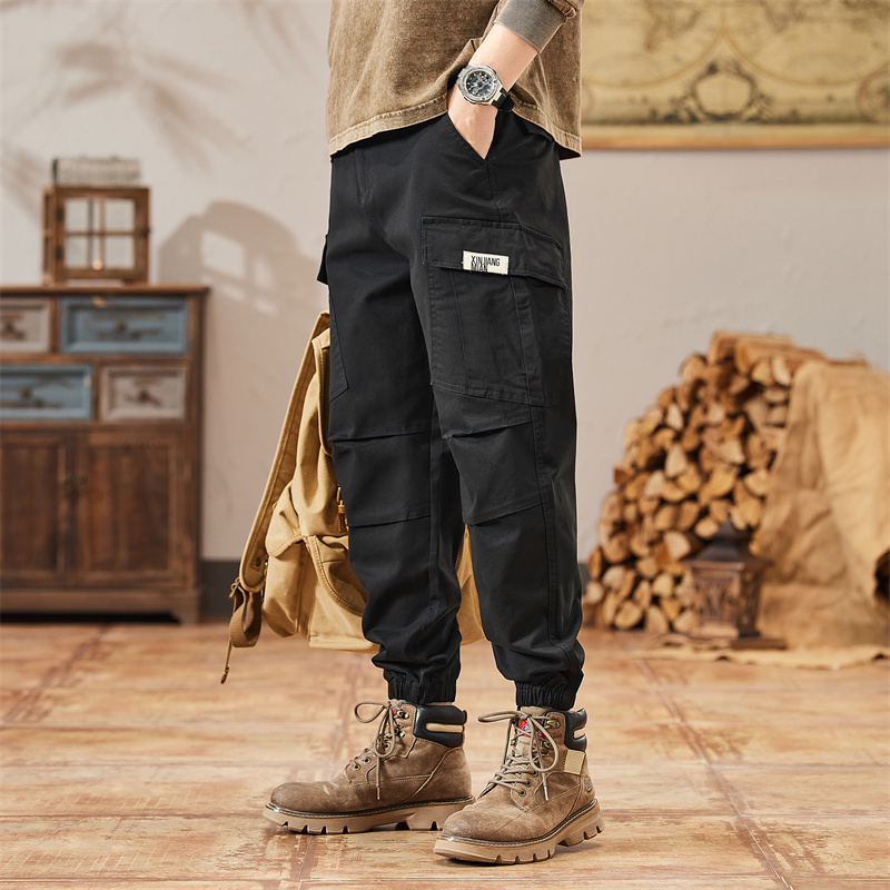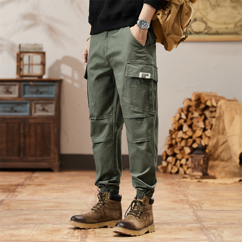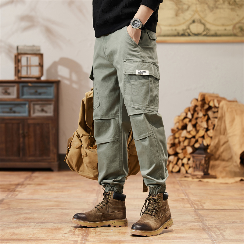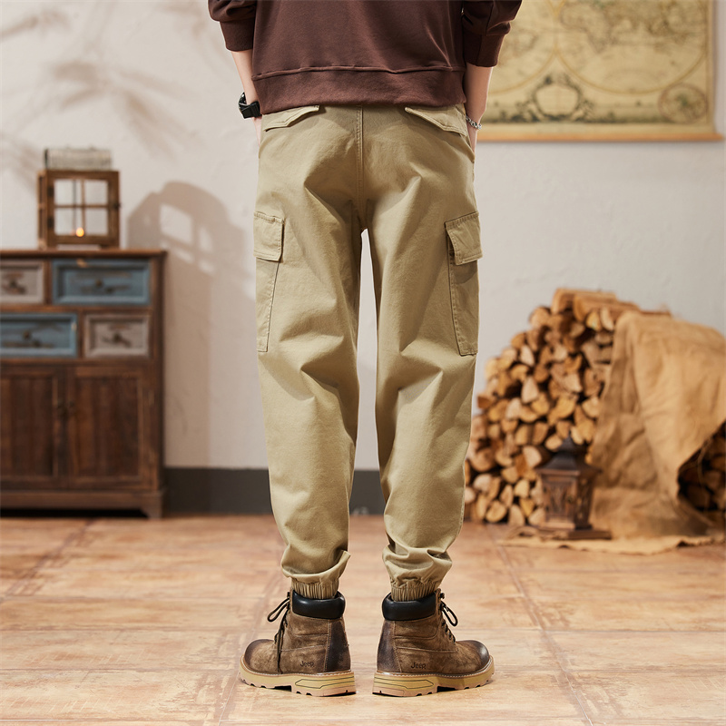 男士工装裤潮牌多口袋宽松束脚哈伦裤秋冬季新款休闲长裤子卡其裤