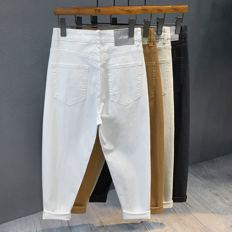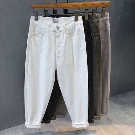 高端潮牌百搭白色牛仔裤男士休闲裤夏季薄款宽松小直筒九分裤子男