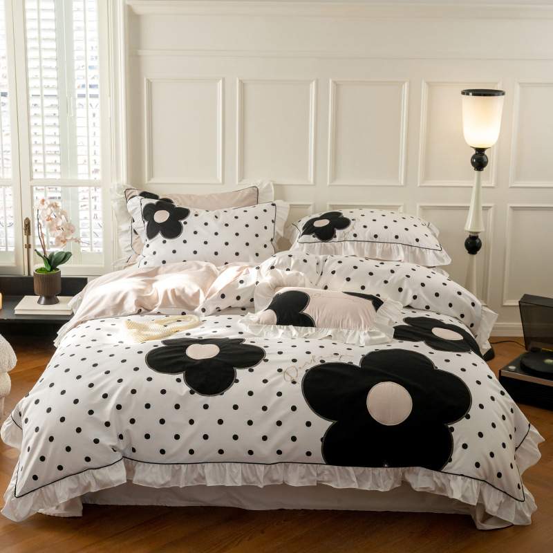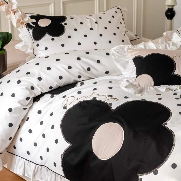 1少女心全棉斜纹四件套法式荷叶花边数码印花被套1.8m纯棉床上用