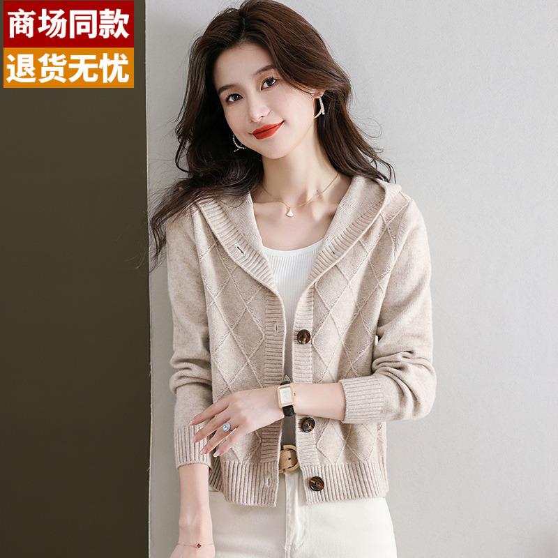 春秋季新款连帽针织衫女宽松短款羊毛开衫外搭小款毛衣外套配裙子
