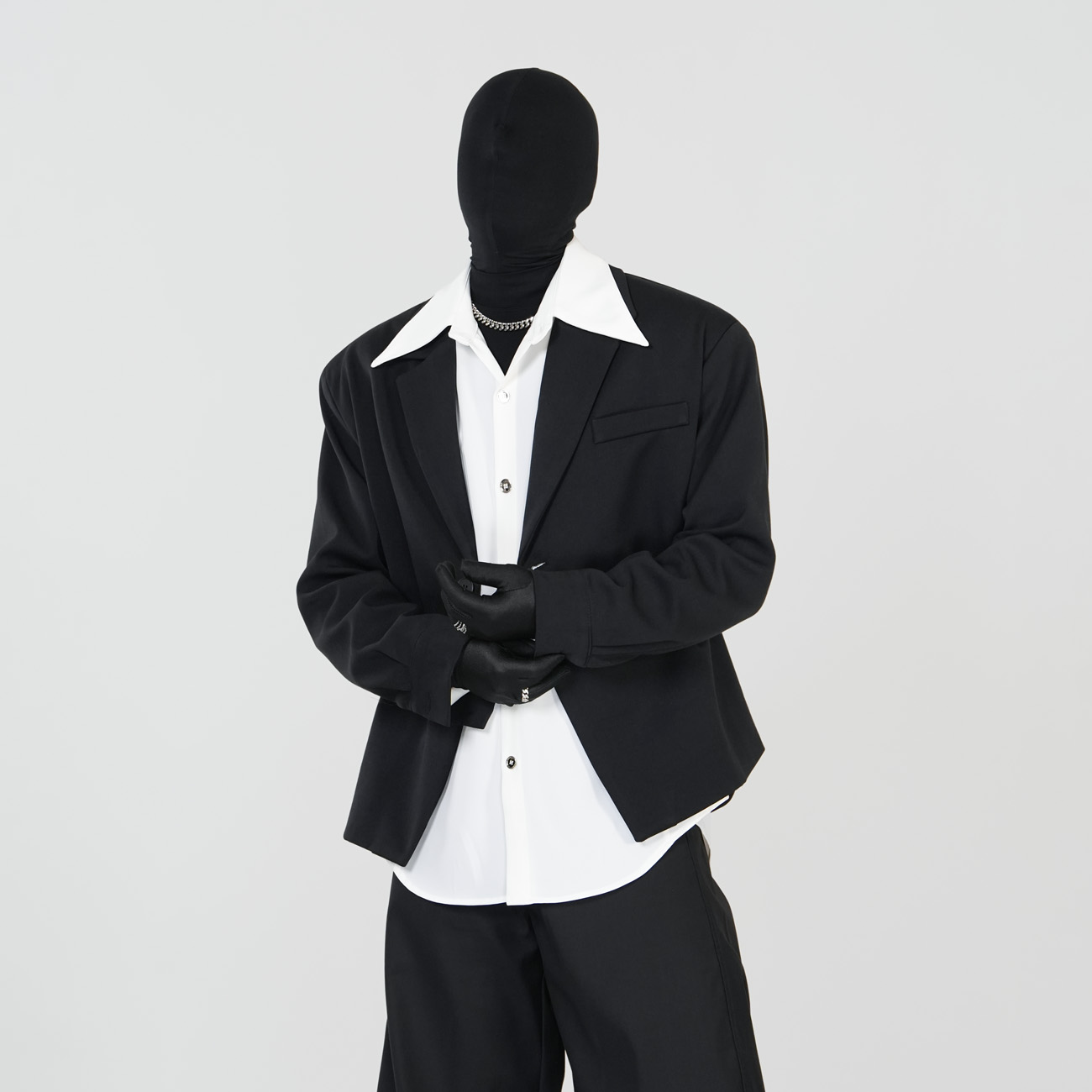 VE2 cleanfit基础款西服外套男黑色短款垫肩单西装四季小礼服上衣