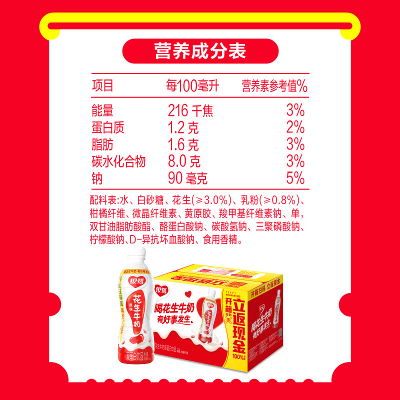 银鹭花生牛奶450ml*15瓶整箱特价营养早餐复合蛋白饮料中秋节日礼