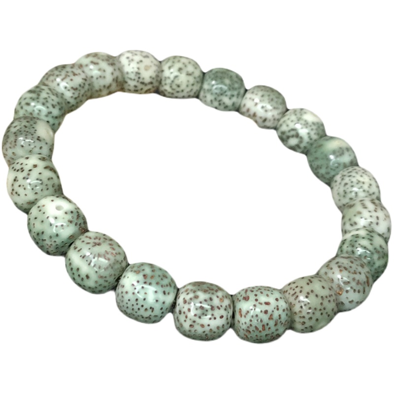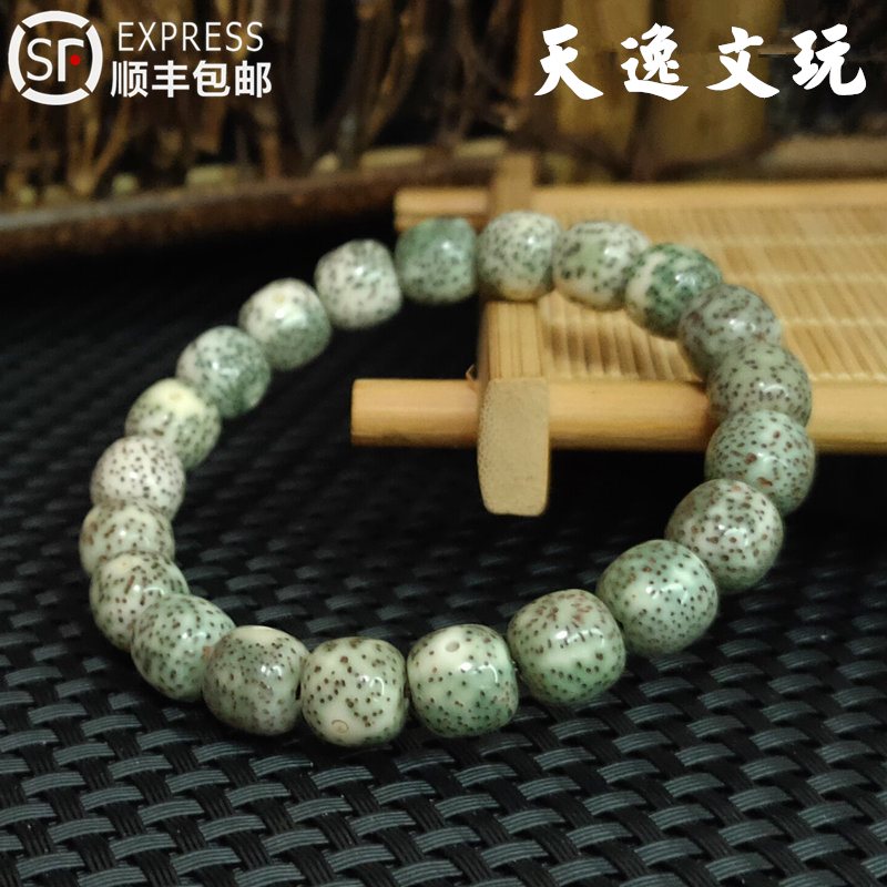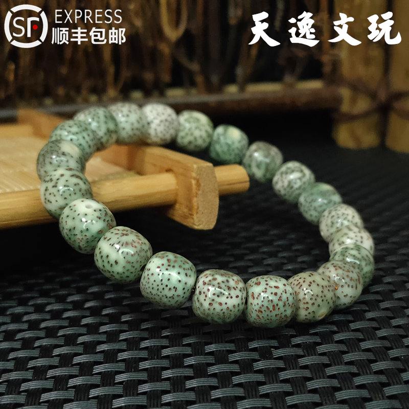 石玉料原生态星月菩提单圈手串手链海南阴绿皮高密度油脂正月男女