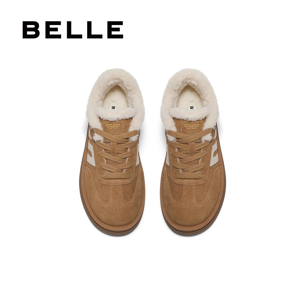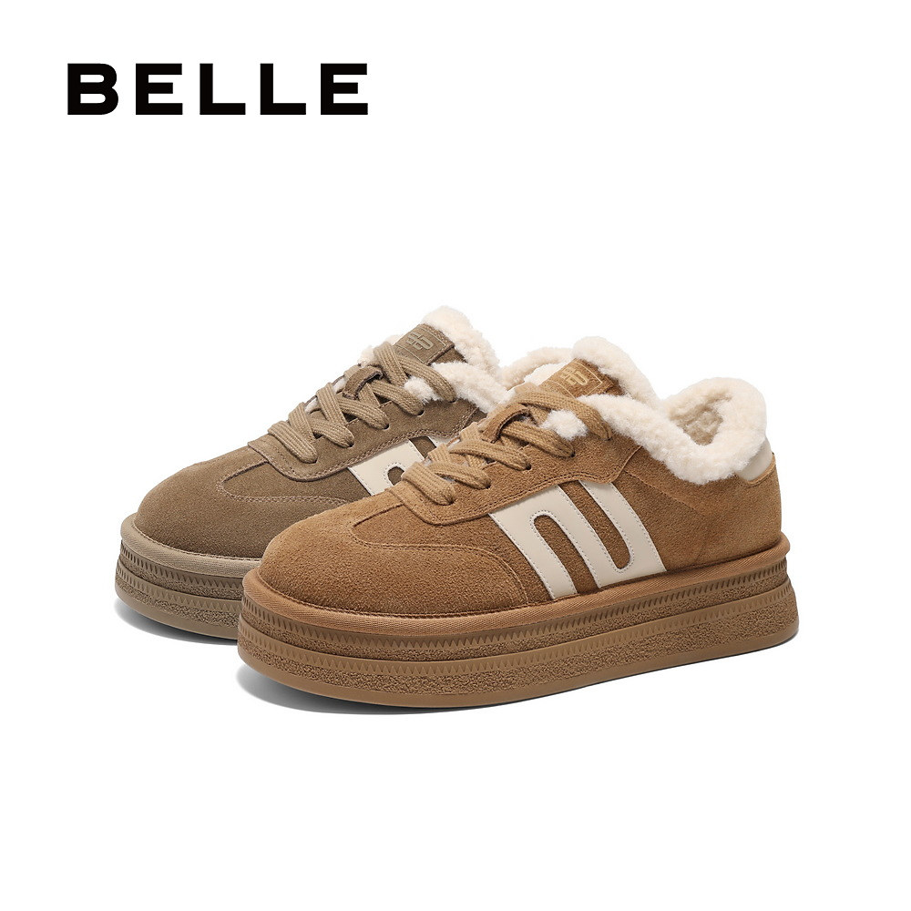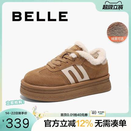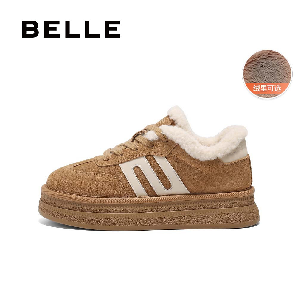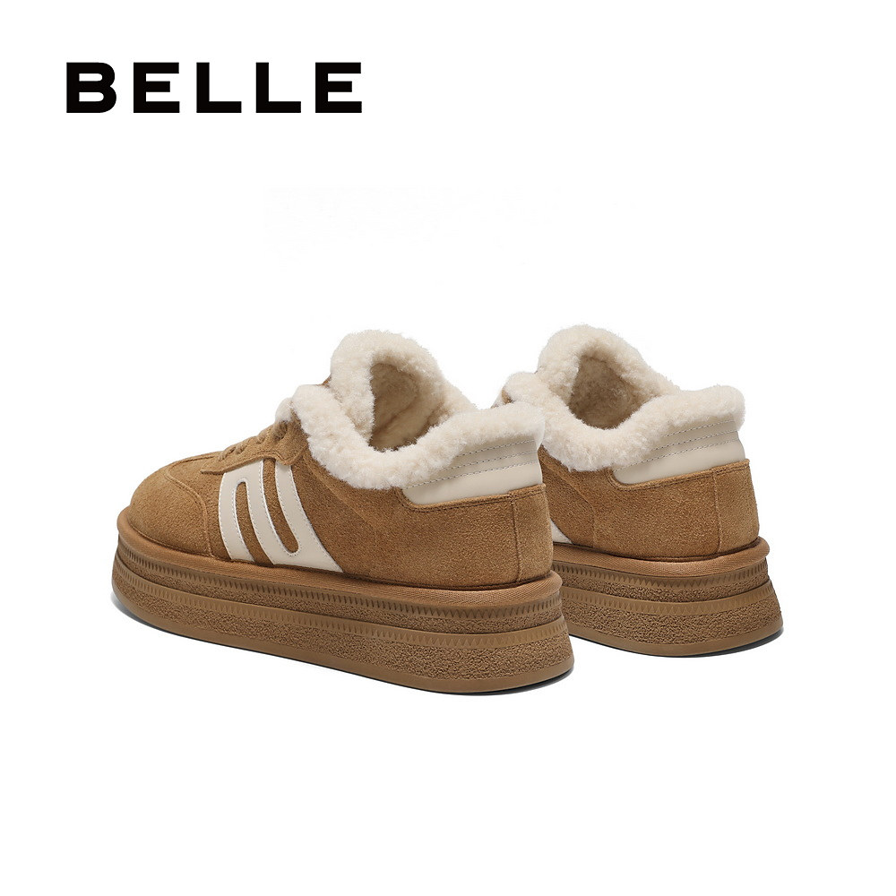 百丽女鞋子厚底加绒毛毛德训鞋女春季新款休闲棉鞋板鞋B2450AM5
