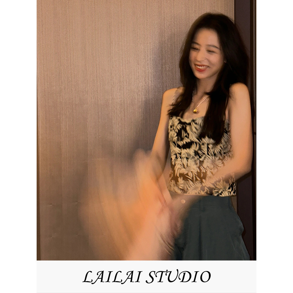2026夏季新款周雨彤明星同款甜辣风花卉印花小吊带无袖短款上衣女