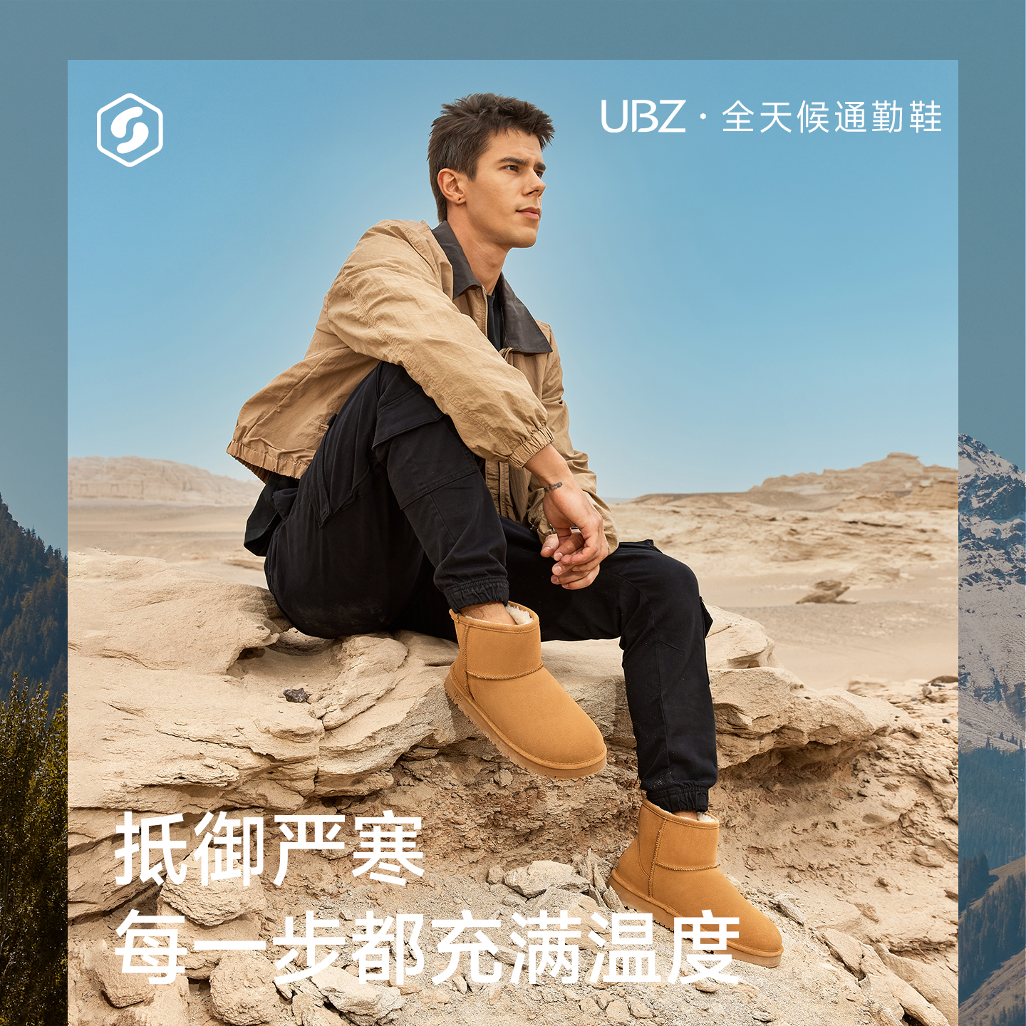 UBZ 防水雪地靴男士2025新款冬保暖加绒短筒防滑东北加厚低帮棉鞋