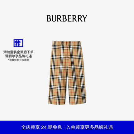 【新款】BURBERRY女童 格纹棉质长裤 81171381