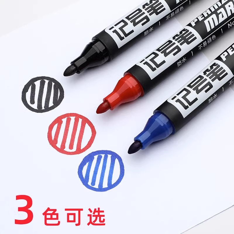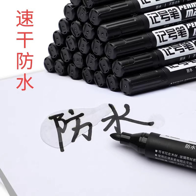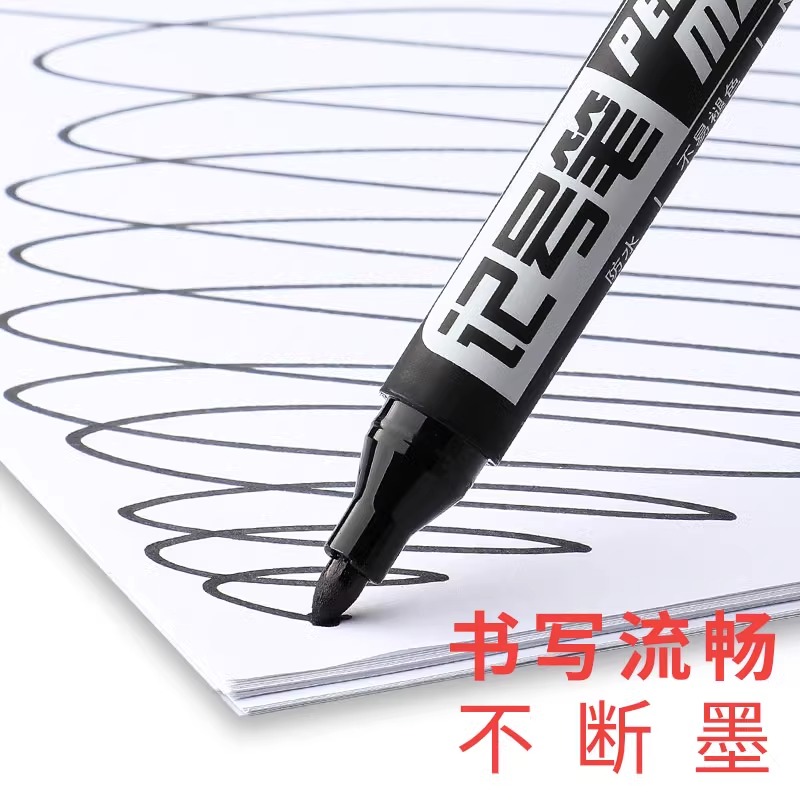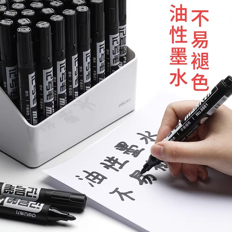 得力记号笔黑色防水防油不掉色工地专用油性大头笔勾线笔标签快递物流粗头瓷砖画线专用笔红色速干水笔马克笔