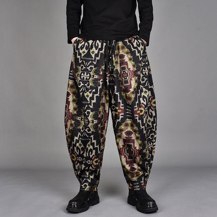 2025冬季新款潮牌民族风印花垂感小脚休闲裤暗黑宽松大码哈伦裤男