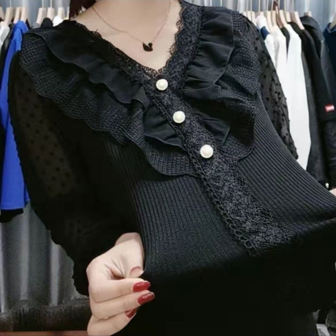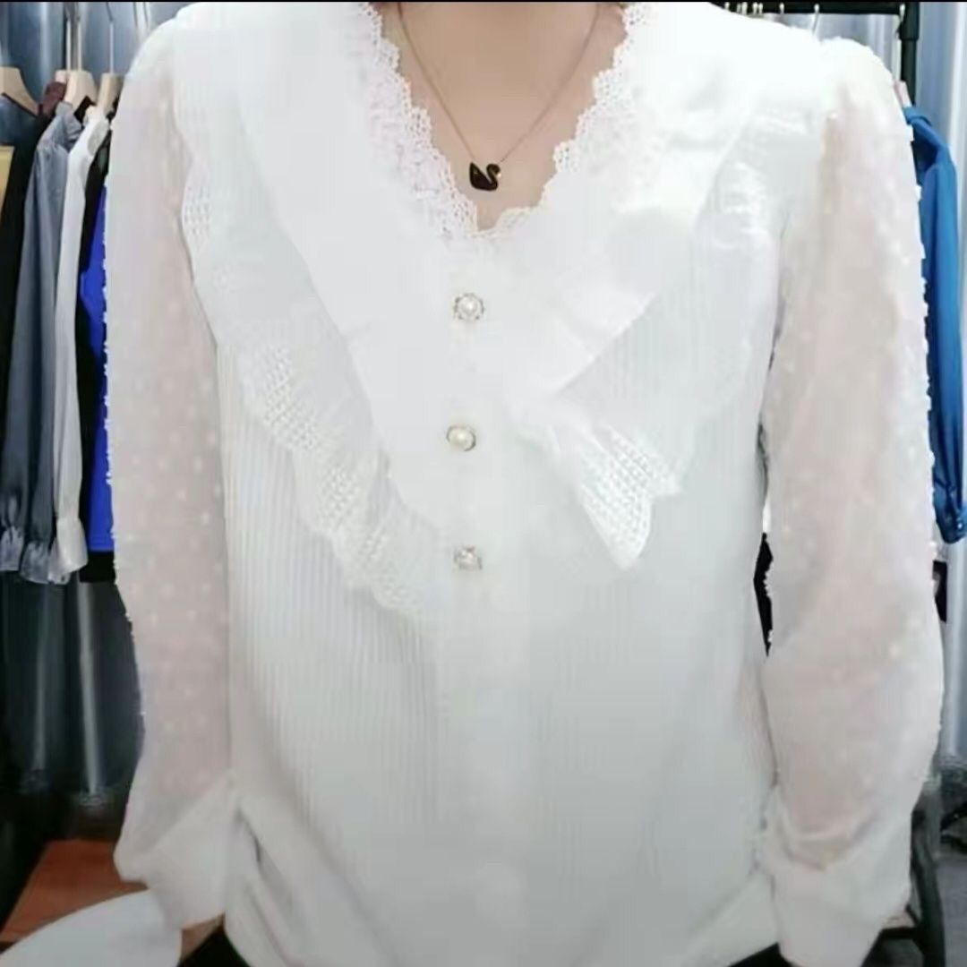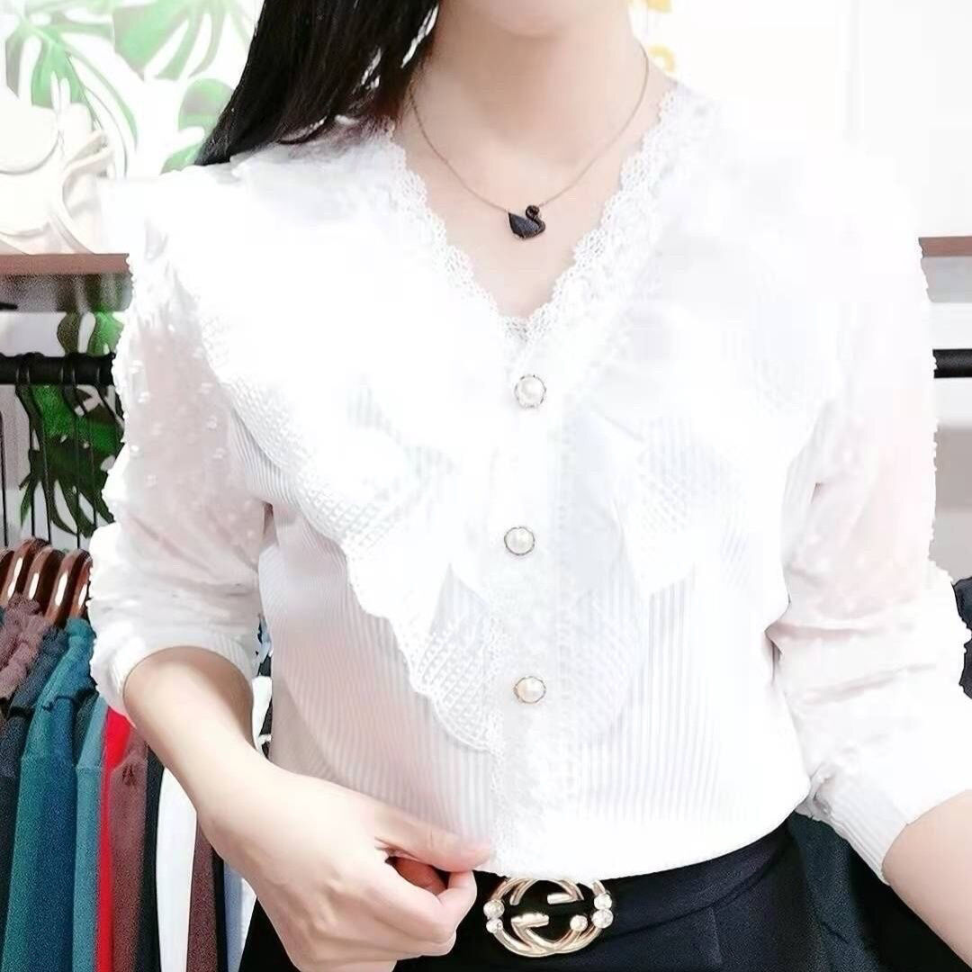网红爆款女蕾丝雪纺宽松花边三扣打底衫色长袖衬衫显瘦减龄百搭